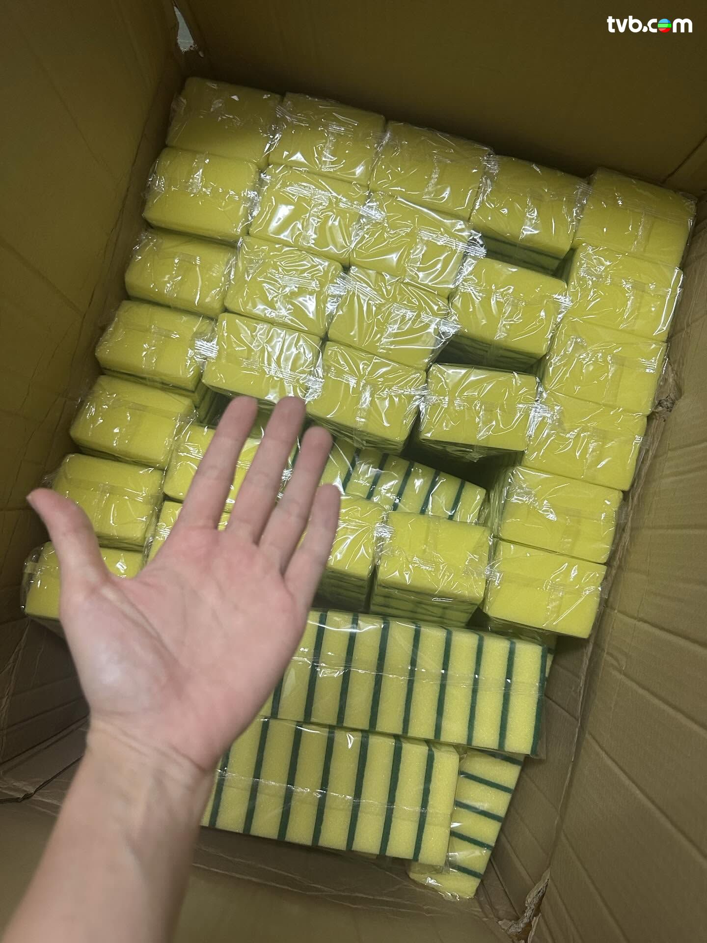 早前有網民分享網購經驗,指其原本只用$17訂兩份20個裝(共40塊)百潔布,料知最後到貨竟共收到400多塊,即平均每塊僅$0.04;據樓主釋出開箱照,貨品幾乎高過半個人,場面誇張;樓主指,她見到父親拖着巨箱回家時,已心覺不妙,開箱之後見到滿箱黃色,更是即刻嚇親,她遂向朋友求助分貨,甚笑言自己「中秋唔送月餅改送百潔布!」