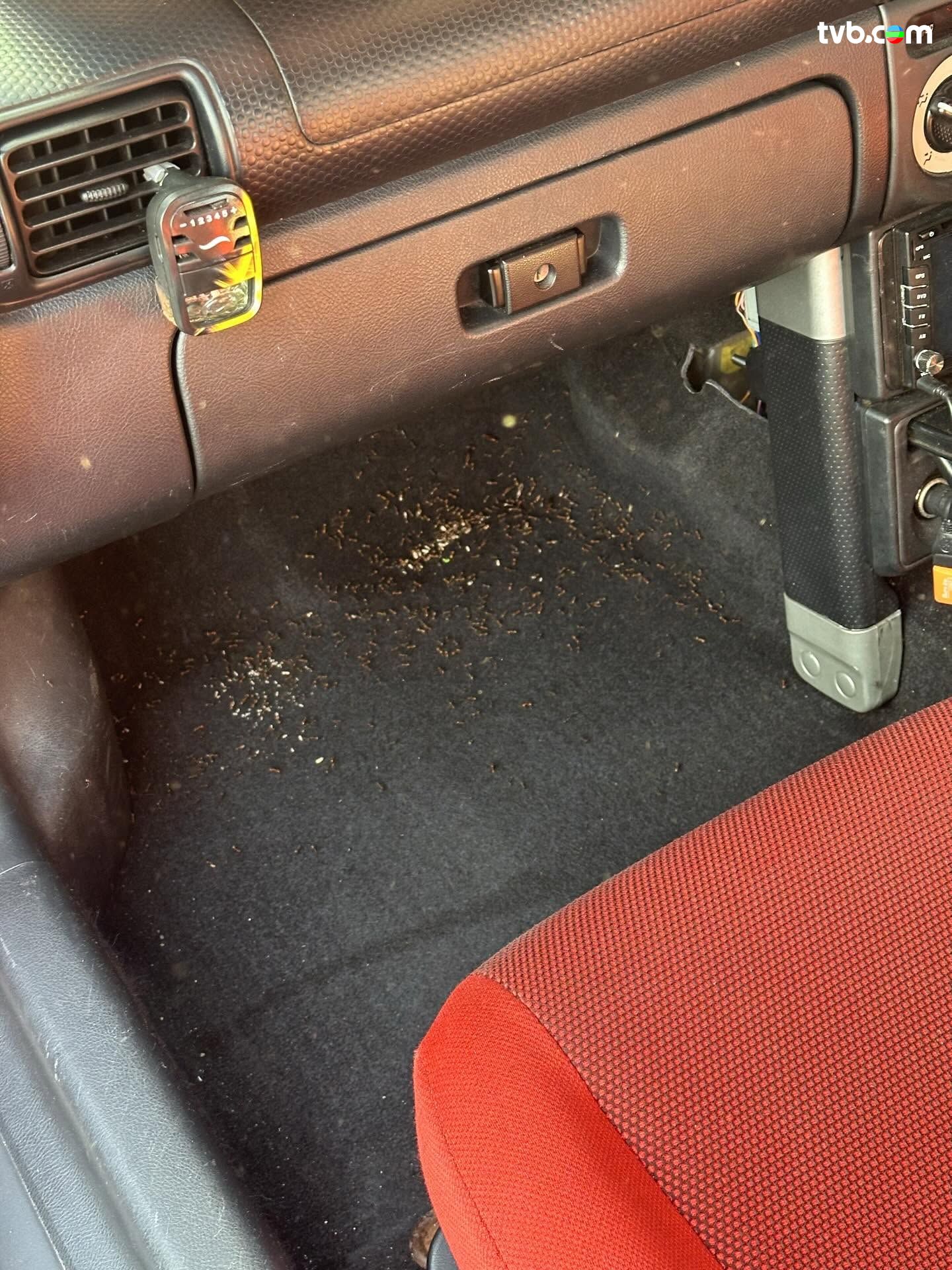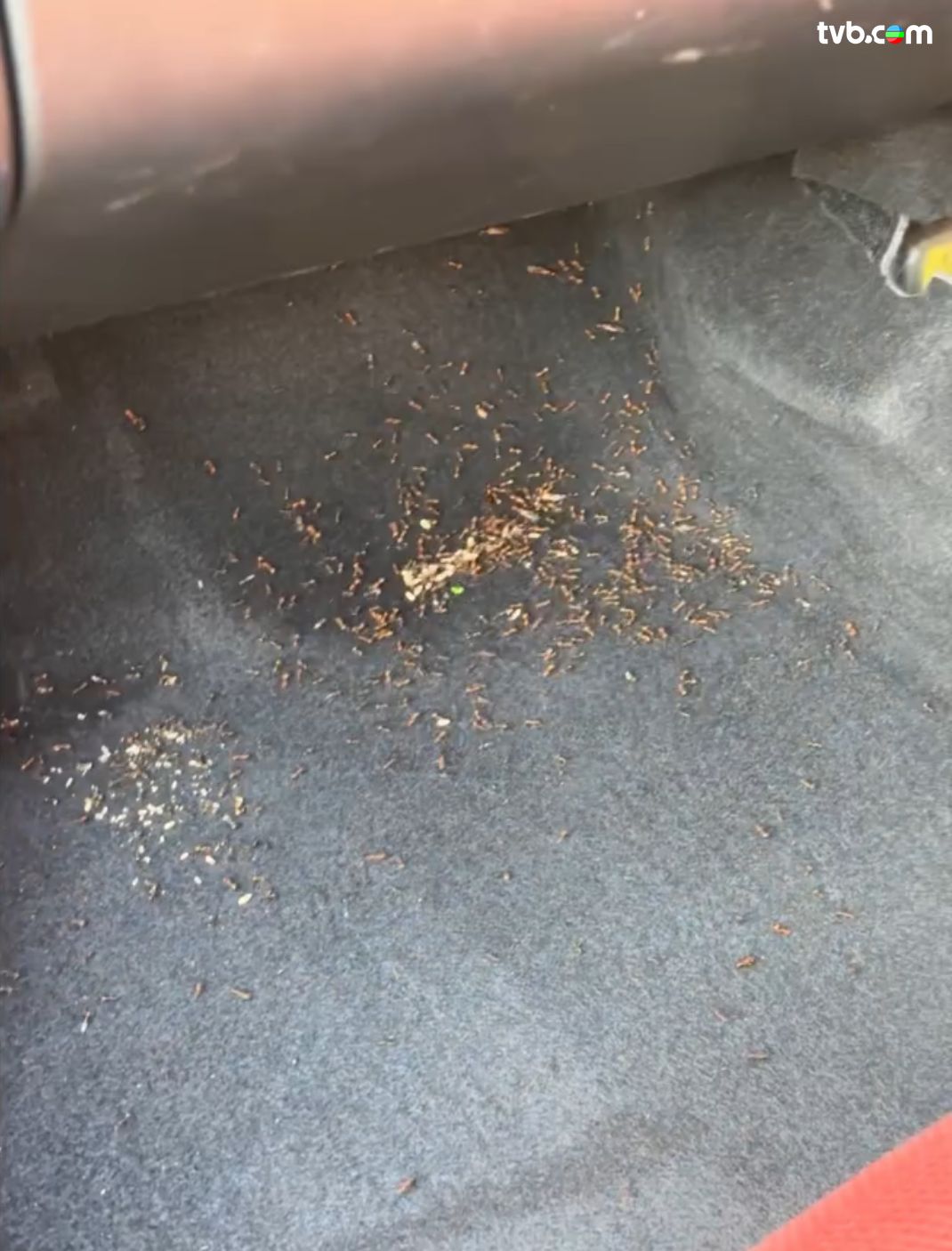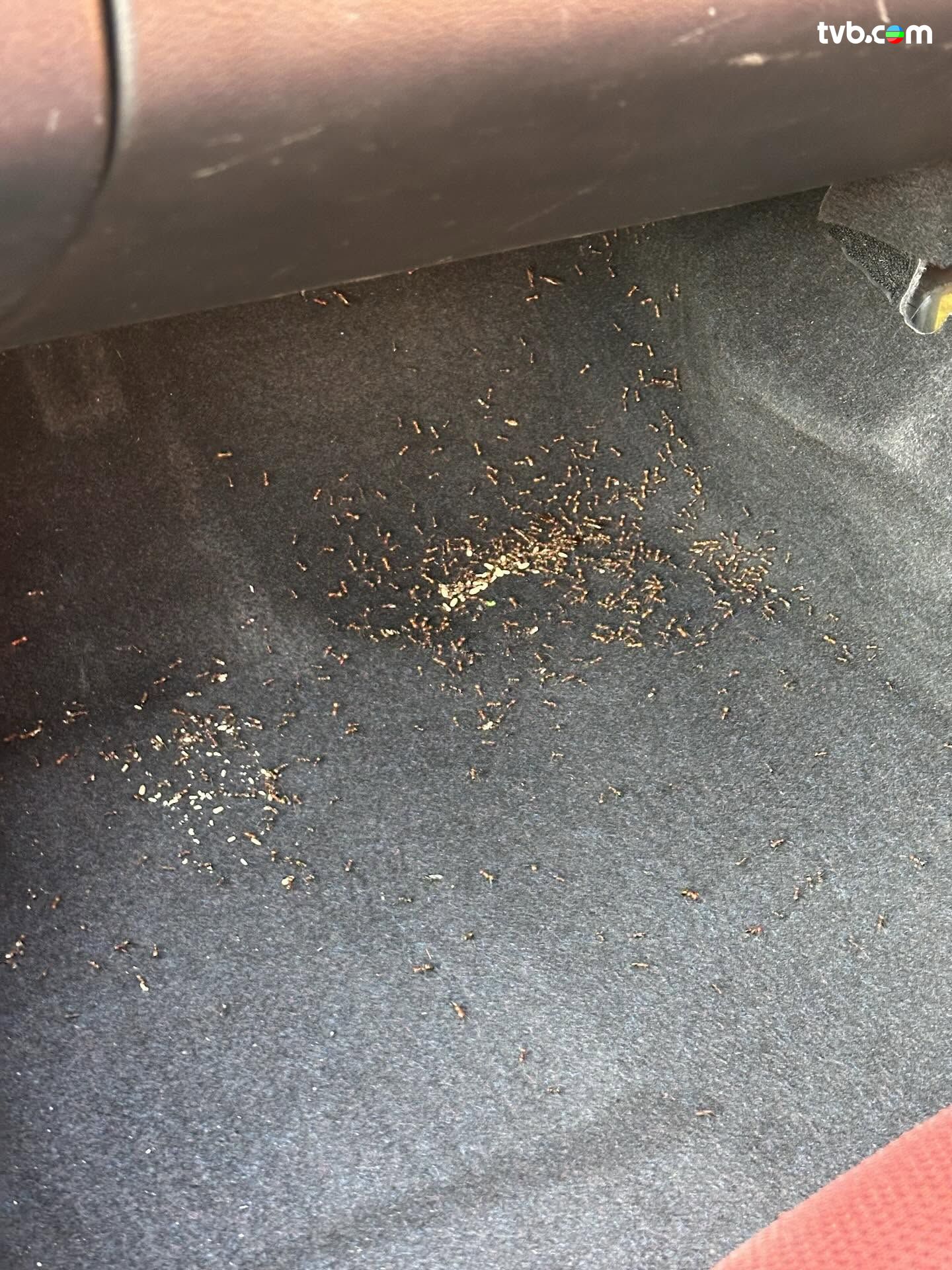 有網民分享影片,指自己早前停泊車在大埔運動場出面,料知兩小時後折返,打開車門竟然目擊螞蟻母后產子過程!畫面可見,車廂地氈上遍布啡色螞蟻,螞蟻「人山人海」四圍奔走,畫面極為壯觀!