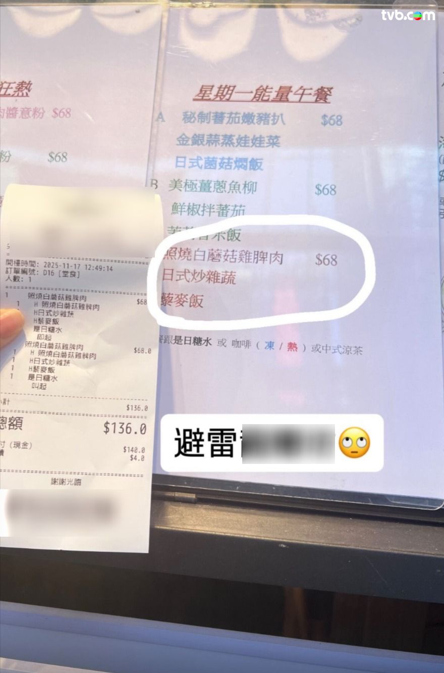 有港女發文控訴,指其日前(17日)於尖沙咀某餐廳吃午餐,只落單四分鐘後,所點的兩客「照燒白蘑菇雞脾肉+是日糖水」就極速上菜,料知到餐後只是一個個預製菜飯盒,連擺盤也沒有,但該套餐單款已售$68;港女即時嬲爆直指「應該頒個吉尼斯紀錄」,之後更已向海關舉報,投訴餐廳未有標示預製菜,要求涉事商品下架,亦希望當局積極跟進。