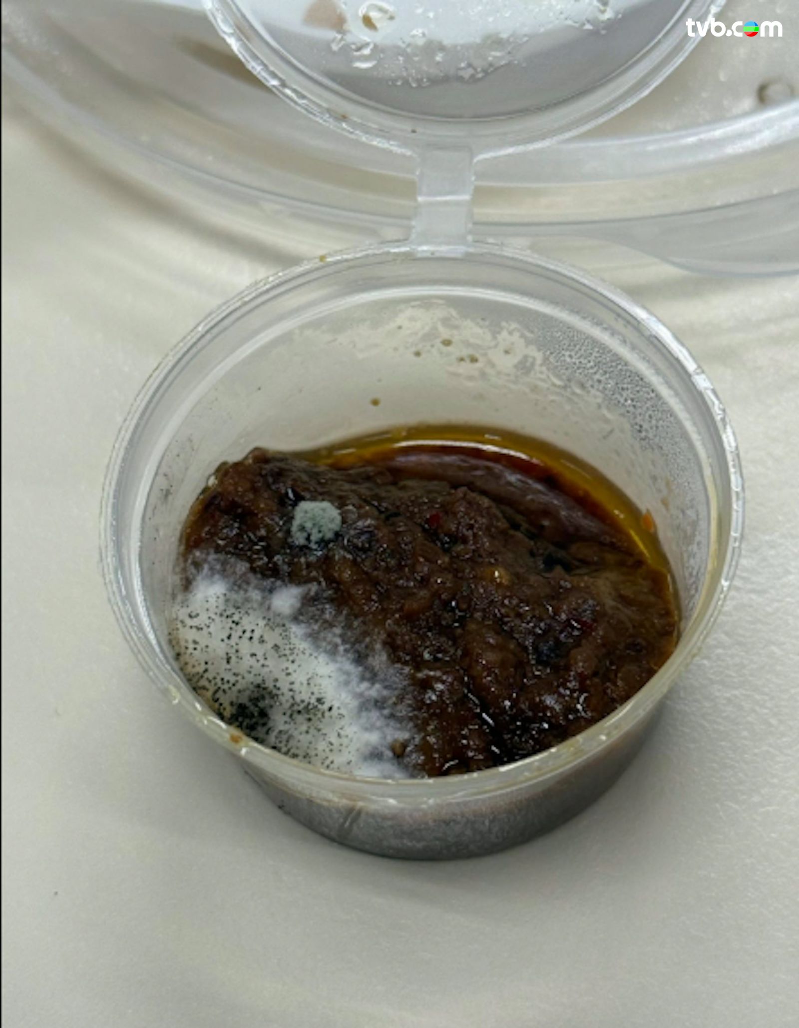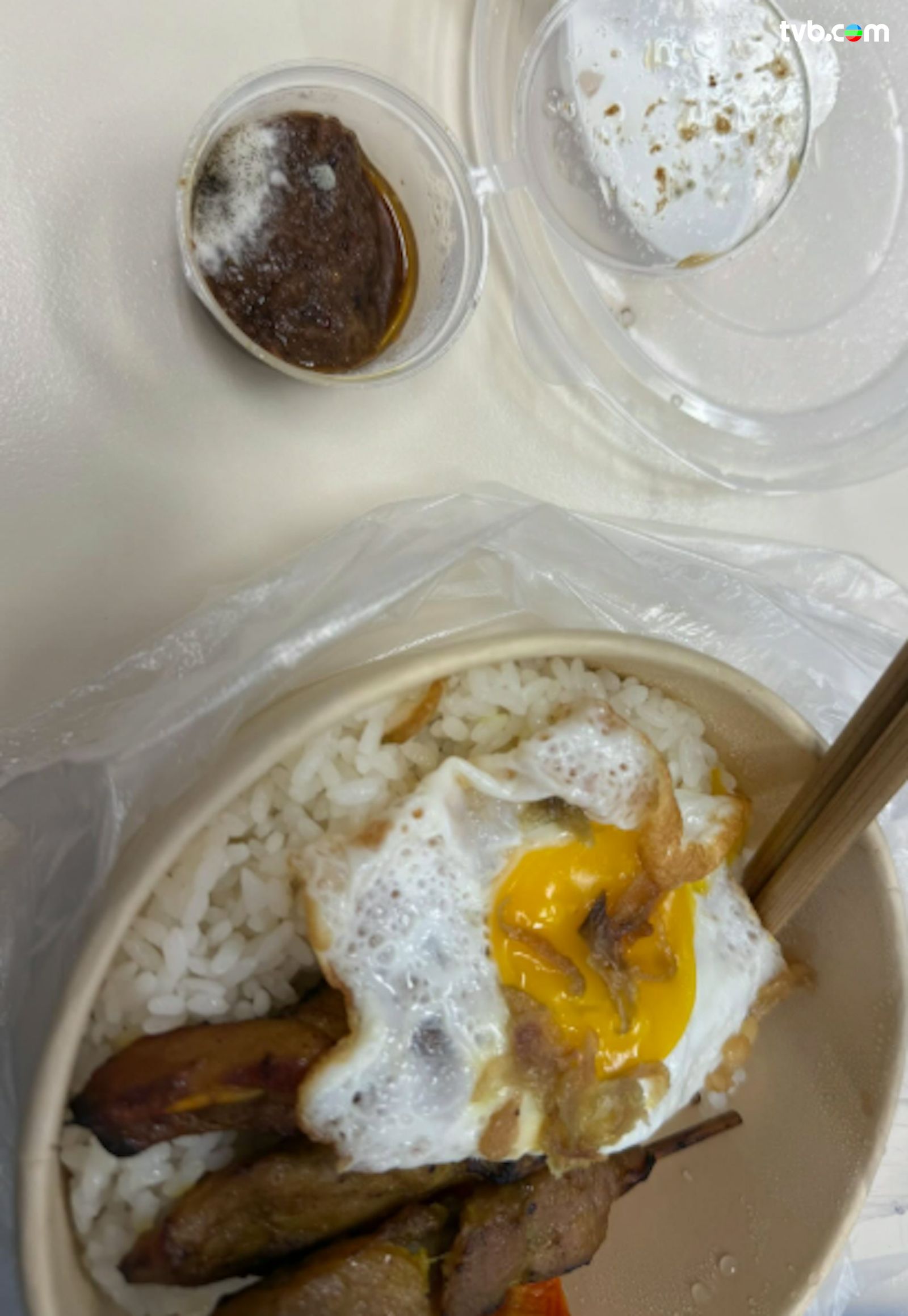 早前有網民發文,指其甚少光顧區內某間餐廳,惟在中秋期間幫襯這小店購買外賣,點了50元沙嗲串燒煎蛋飯;料知他打開外賣,即發現沙嗲汁表面覆蓋大片白色霉菌及黑色斑點,直指看上去「令人作嘔」;樓主續指,不滿食物既貴又不衛生,並表示已向食環署舉報!