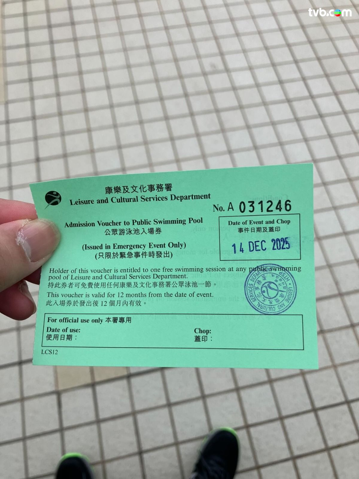 近日有網民分享,指周日(14日)到大圍顯徑泳池游水時,不幸遇上泳池需要緊急封池,令他大感無奈直呼「唔好咁啦,我想游水」。不過塞翁失馬,樓主雖然未能暢泳,卻獲職員派發一張綠色的「緊急再入場券」作補償;照片顯示,該券標明「只限於緊急事件時發出」,持券者可於發出後 12 個月內免費使用任何康文署轄下的公眾泳池一節。