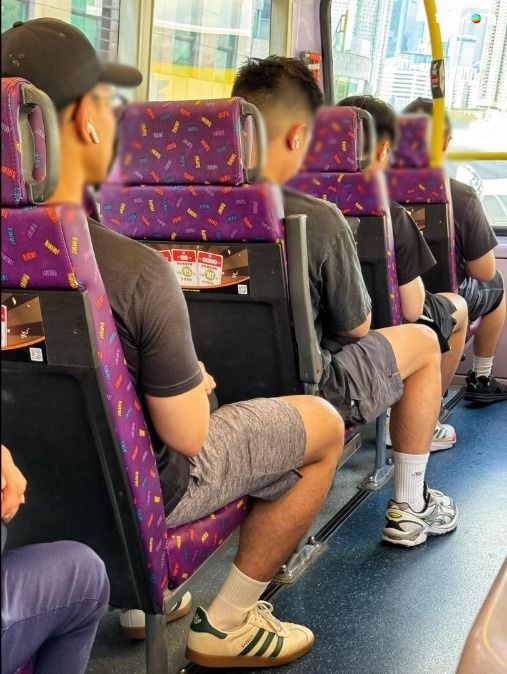不知大家旅遊時,會否留意不同地方人士穿搭?最近有網民分享,指其在巴士拍下一幕,畫面可見四名前後並坐的港男,竟一致地穿上黑色T恤、灰色短褲、白襪配運動鞋,兼耳戴AirPods;畫面令樓主不禁嘆道,可能這就是「港仔Typical look!」亦有眼利網民發現,四位港男的共通之處竟還有坐姿和髮型!