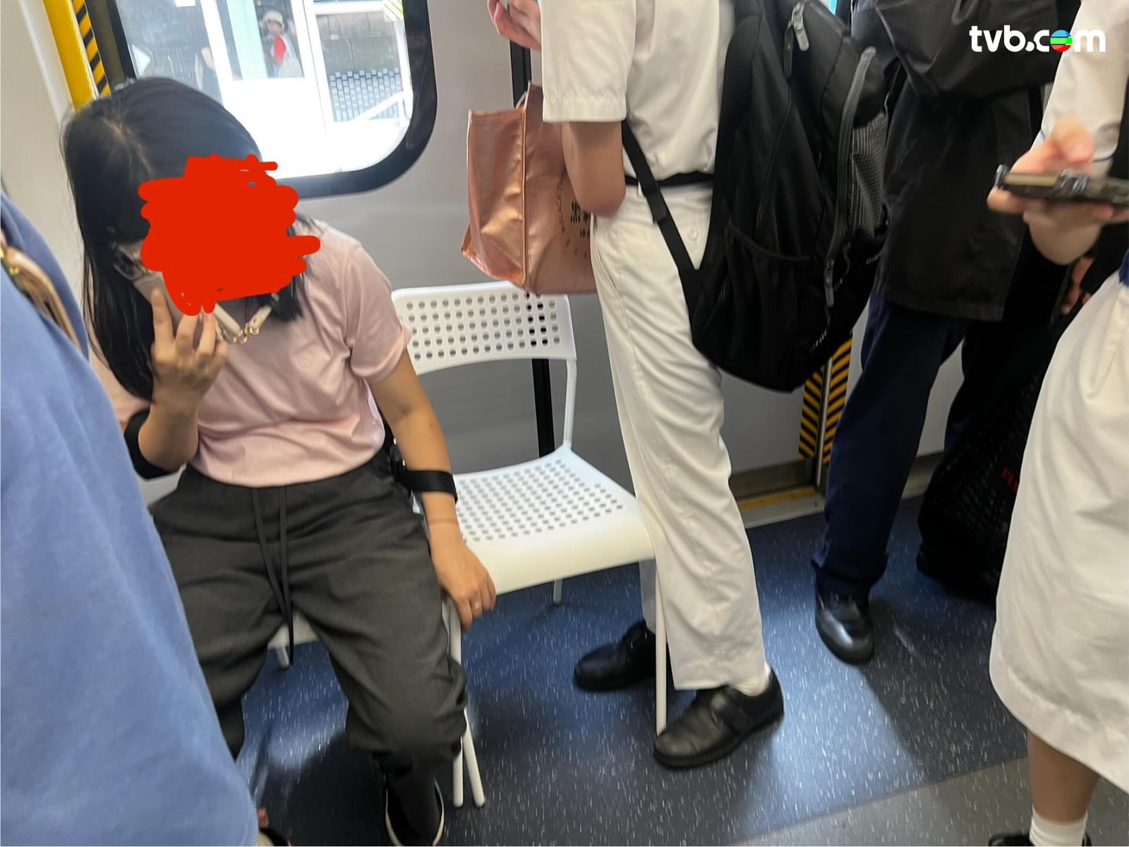 早前,有人在社交平台分享,指其在乘搭港鐵期間,撞正一名中年長髮女自攜兩張膠椅,更把它們放置在車廂門口乘坐,幾乎遮擋了半邊車門;更是相中女人坐一張,另一張拿作扶手,惟當時車廂已經擠滿了人;有指中年女除了攜椅遮擋半邊車門,還在現場高聲談話。