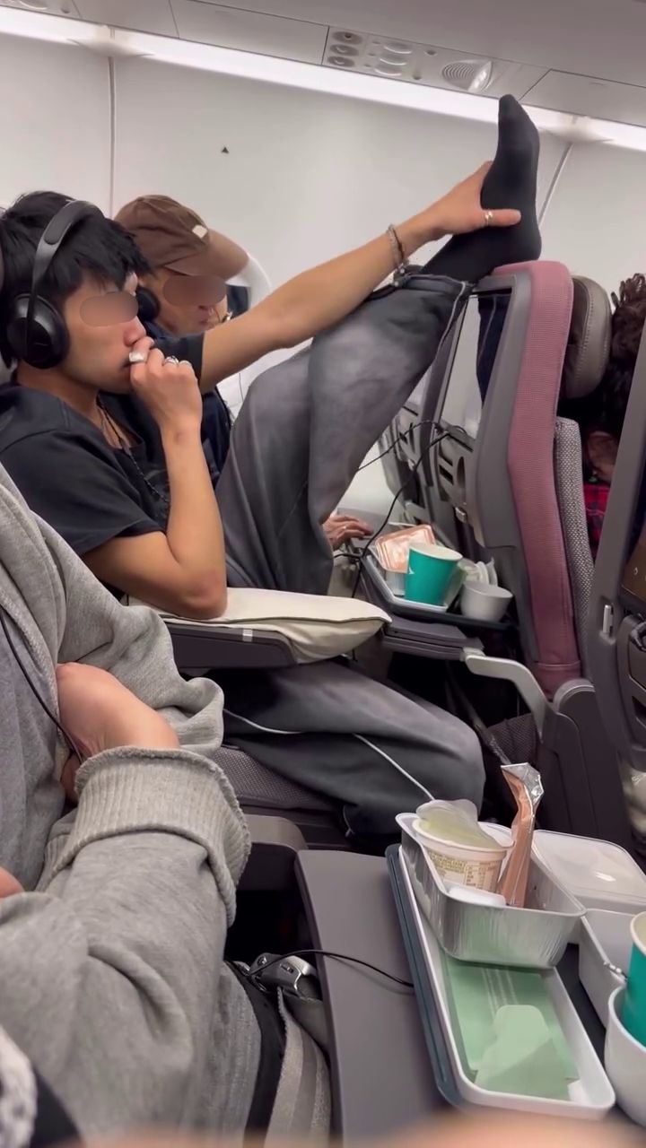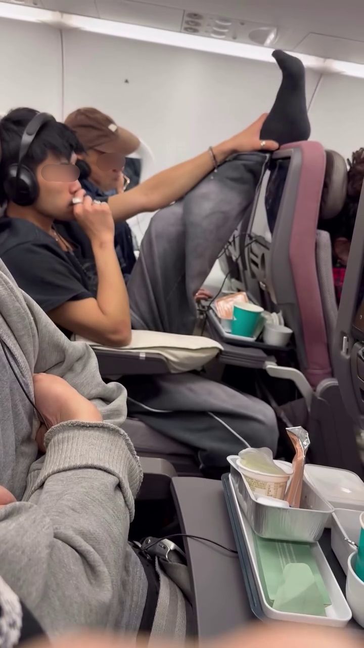 網上流傳一則影片,有網民乘搭國泰航班時,目擊鄰座男子將腳放上前座的頭項位置,留言:「狗血短劇才會出現的人種。」片中所見,當時似是大家剛好用完餐,該男子不但舉起隻腳,還用手一邊捽腳,後來有空中服務員提醒,他才放下隻腳。