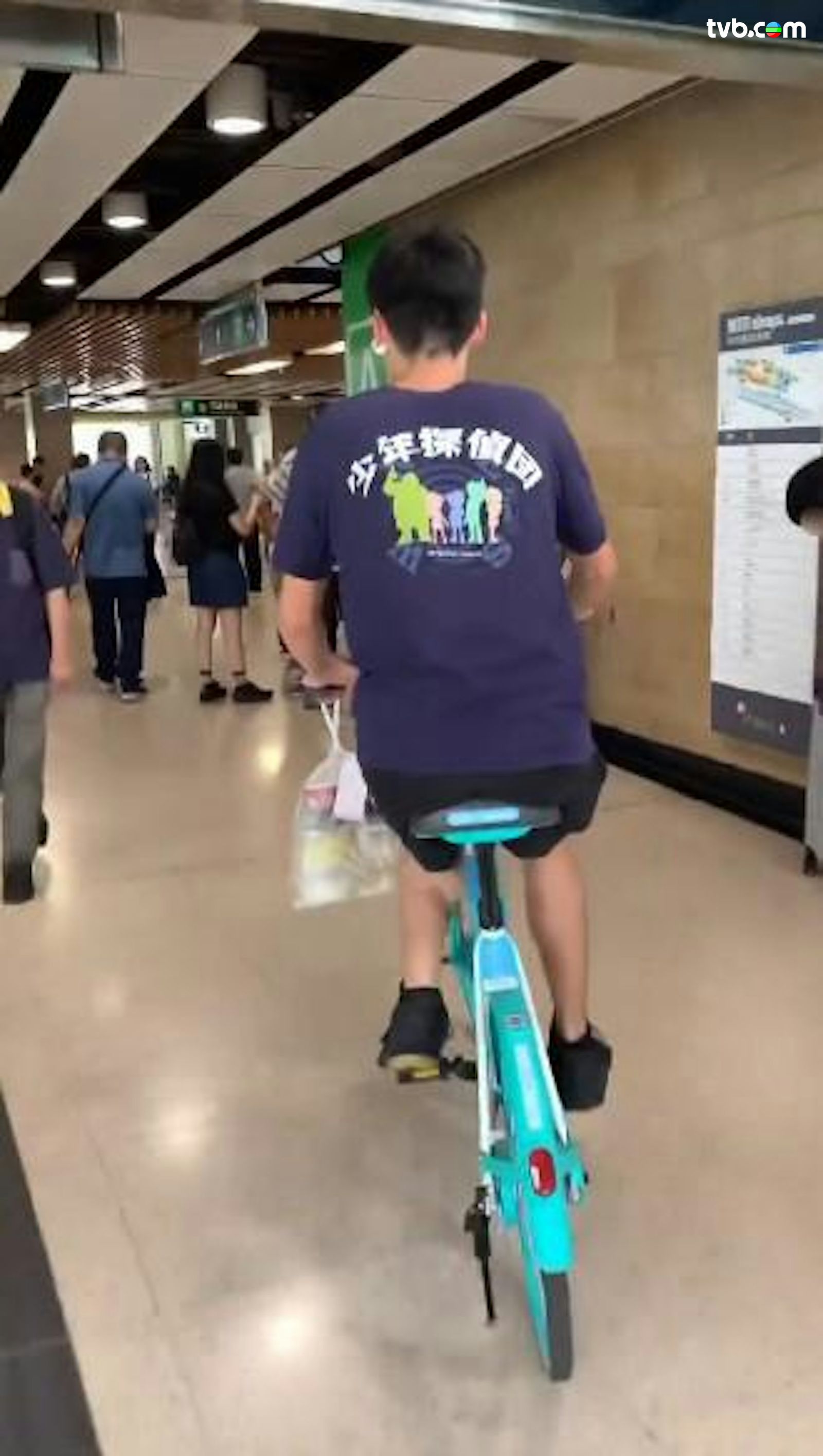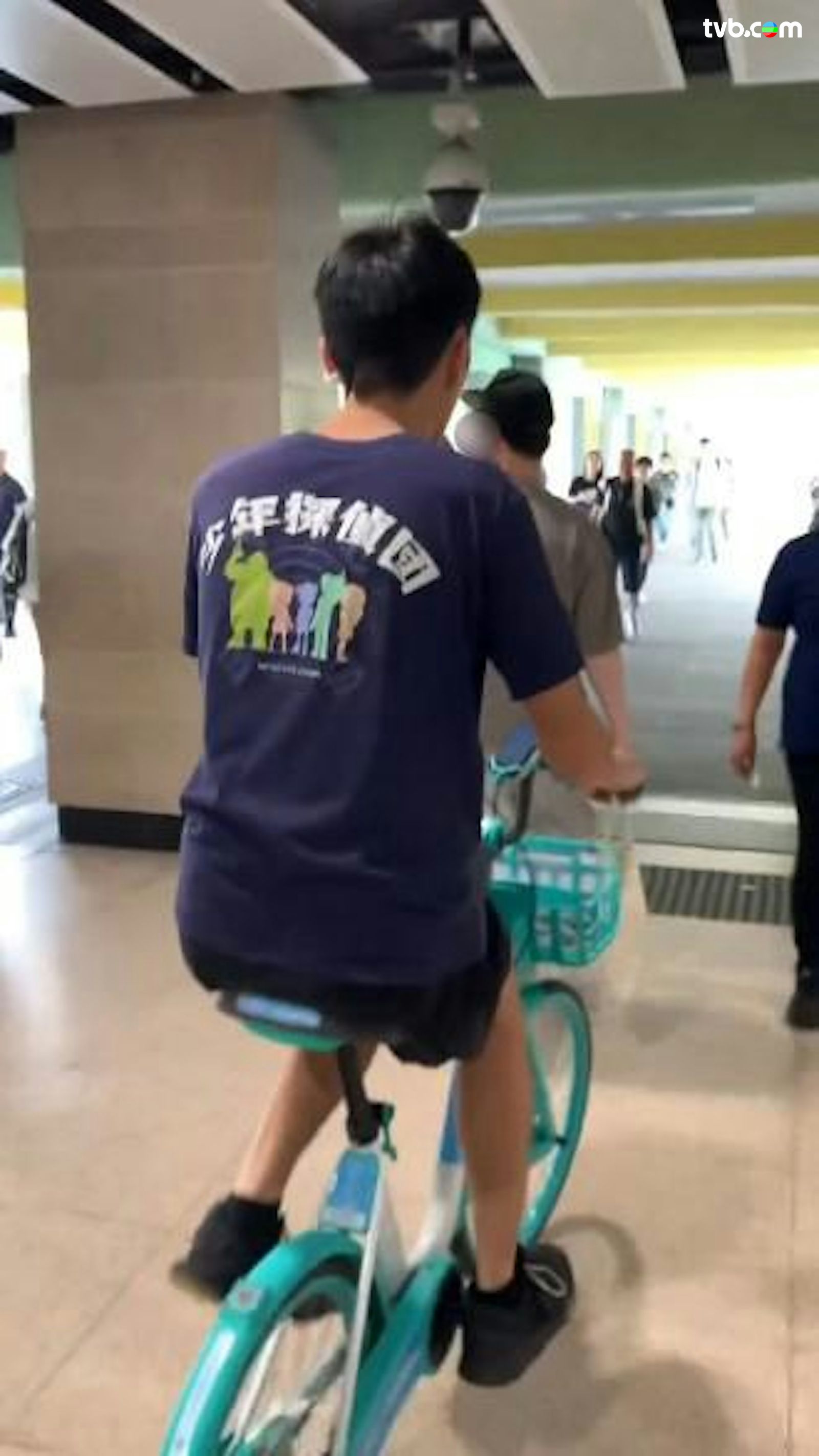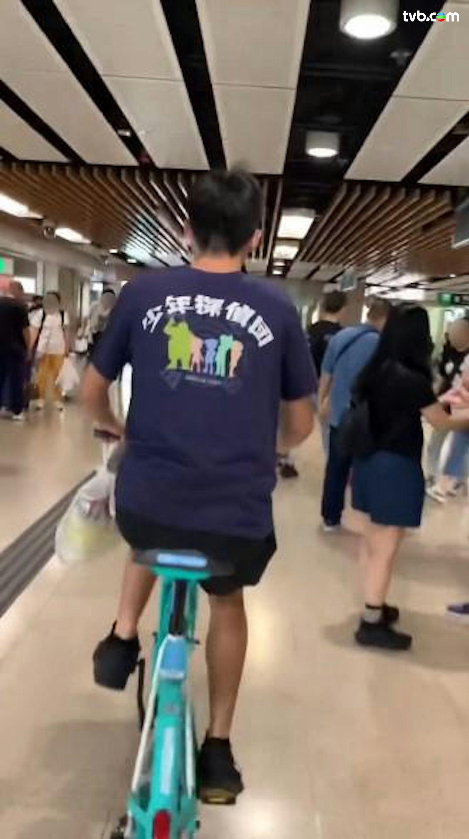 近日社交平台瘋傳影片,攝於3月28日,畫面可見一名身穿深藍色上衣的青年,竟公然違反港鐵附例,於粉嶺站大堂內徑自騎行一輛共享單車,單車左邊手把更掛着一袋外賣食物,由接駁粉嶺名都的A1出口,一路直踩至蓬瀛仙館的B出口,期間在熙來攘往的乘客中左穿右插,幸並未釀成撞傷途人意外。