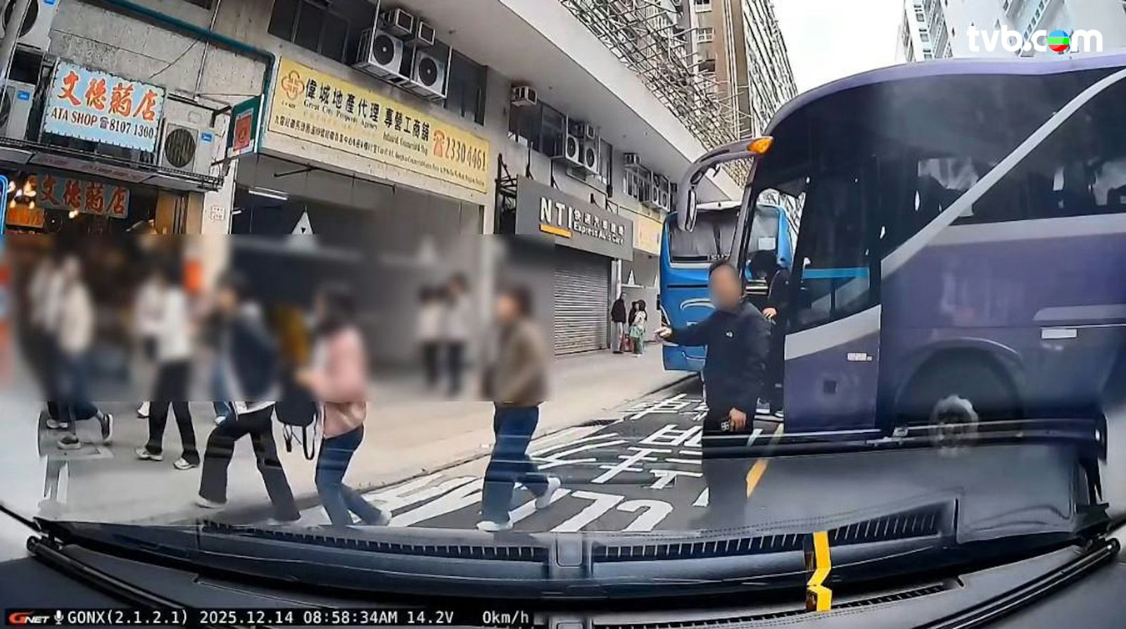 有網民日前發文呻爆,指上周六(14日)早上約9時駕車途經紅磡民樂街時,遇上一輛旅遊巴打橫停在路中間落客,結果自己的車被完全封死無法駛走。片段所見,大批乘客其後陸續從旅遊巴落車,一名身穿黑衣的男子更一度走到樓主車前,面露不悅地揮手比劃一下,才轉身離開,隨即站在旅遊巴車頭位置「睇實場面」,直至所有乘客落齊,期間並沒有為被阻司機騰出通道。
