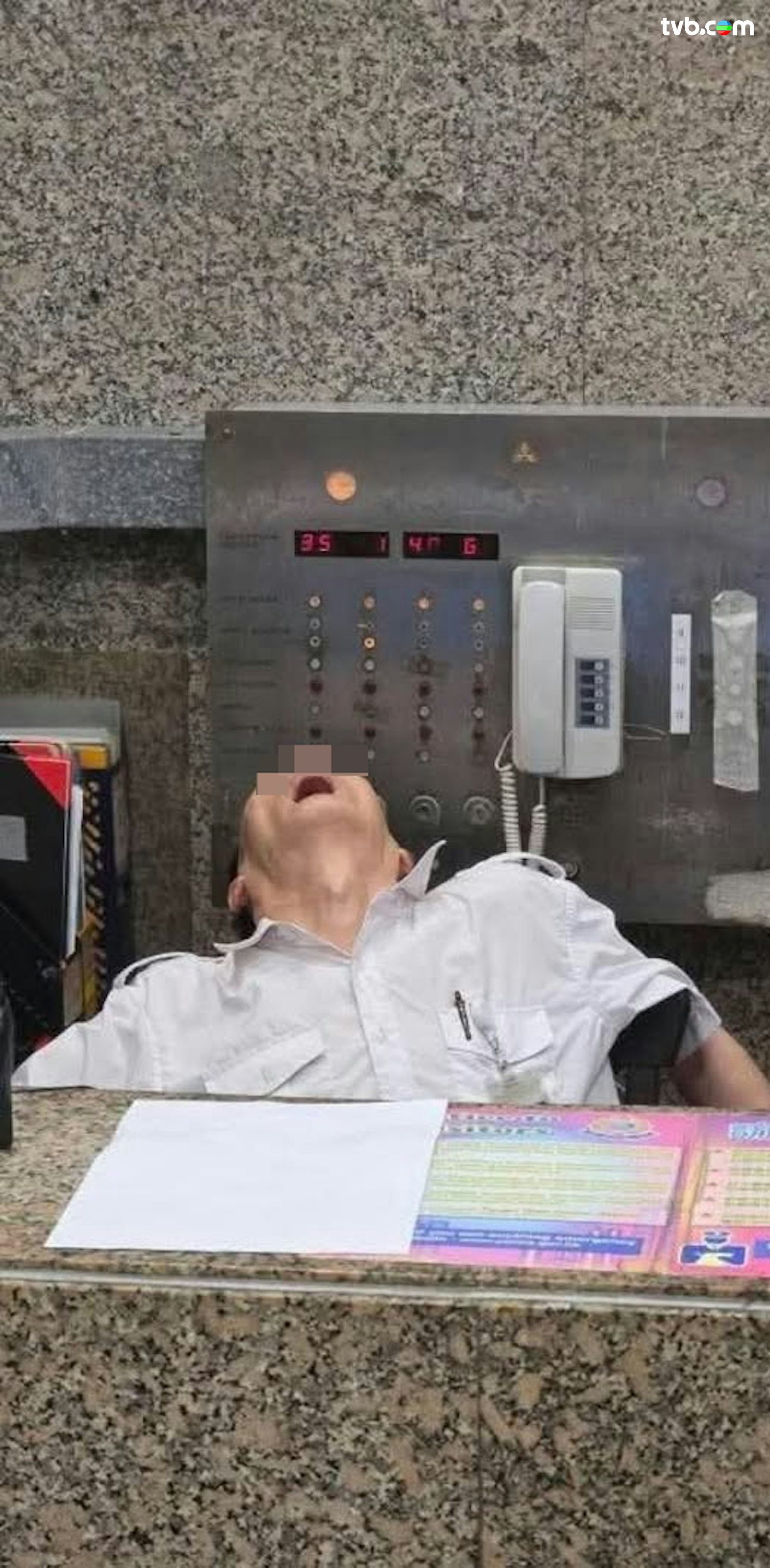 大家有否試過上班放完晏,撞正飯氣攻心在公司睡著?早前網絡流傳照片,見到一名私人屋苑保安,疑在工作時間公然入睡,更瞓到頭部後仰、嘴部打開,睡相更被網民指似「等緊照胃鏡」;亦有人認出,照片中人正是自己居住屋苑的保安,更揚言保安行為有失專業,勢要投訴!