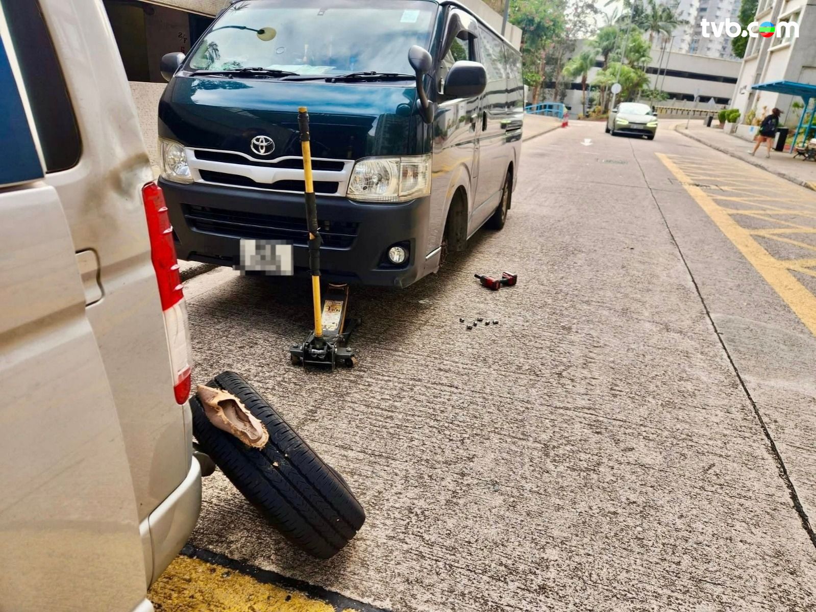 爆呔相信不少司機都有遇過,但車呔這樣被刺穿實在離奇!近日有網民分享奇趣見聞,可見一隻米色舊高踭鞋,竟筆直地插進其貨Van車胎,造成嚴重穿刺,司機更無奈被迫在路邊自行換胎,至於目睹情況的樓主則言:「到底人嘅一生比一隻高踭鞋,插穿車呔嘅或然率係幾多呢?佢應唔應該去買六合彩?」