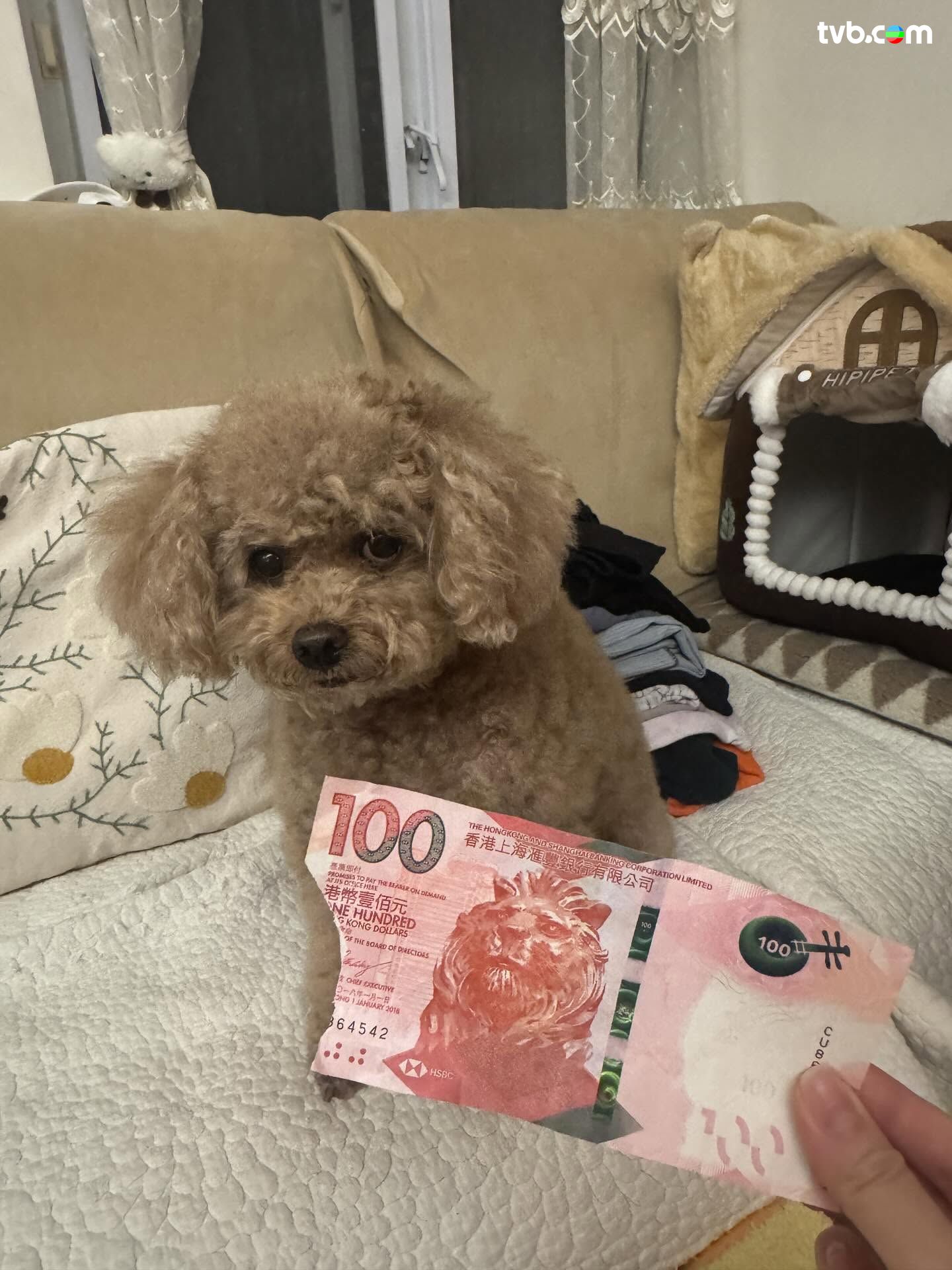 不少港人也有養寵物,早前就有網民分享,指其養飼的玩具貴婦狗,把自己的$100紙幣咬去一角!狗狗事後仍擺出「眼睥睥」的樣子,似乎未有知錯,令樓主哭笑不得,更在貼文中寫到「開始要每日摷佢啲屎!」樓主之後更指「要日日擺喺佢面前,話俾佢知自己做錯事!」