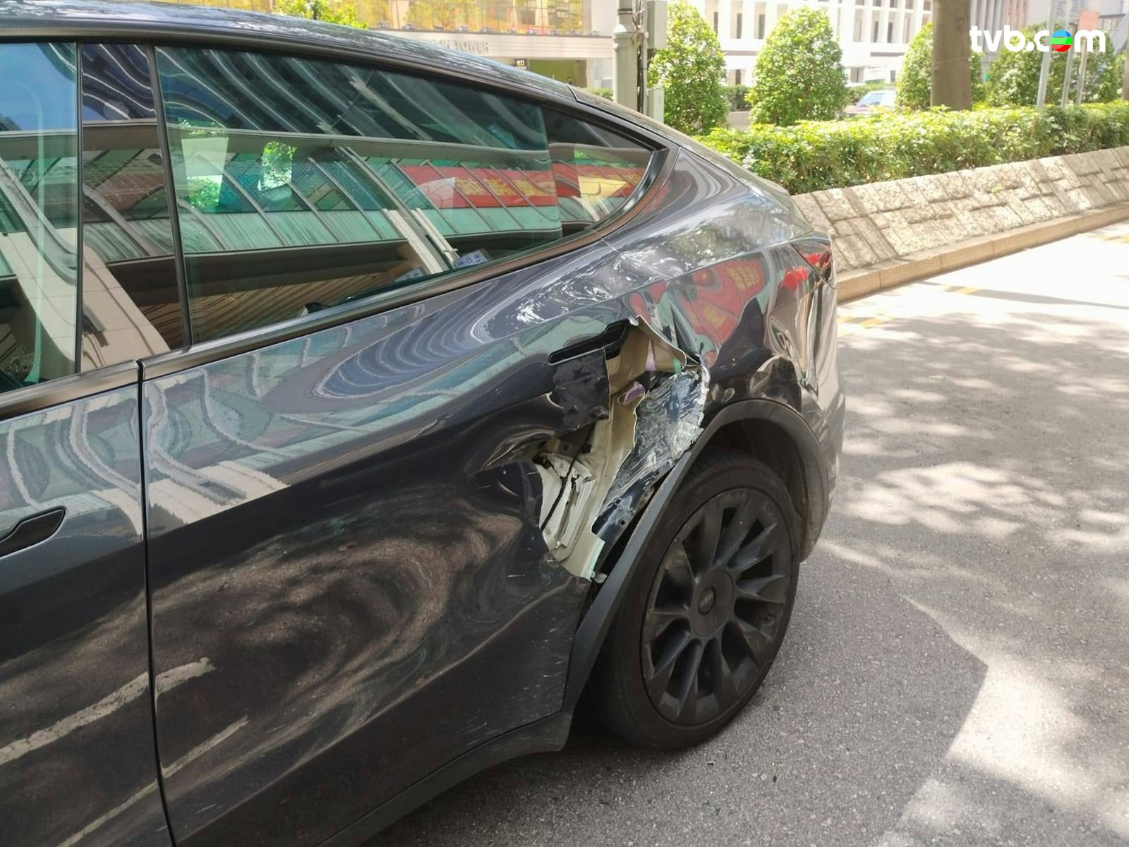 據車cam所示,首被撞的黑色私家車損毀嚴重,左後車門穿洞;據了解,意外導致兩人受傷,分別為黑色私家車的36歲姓劉男司機和七人車上的40歲男乘客,兩人均稱有腰痛,但無需送院。