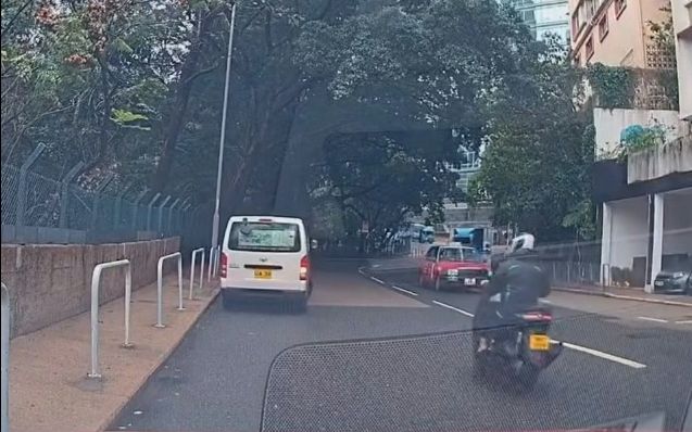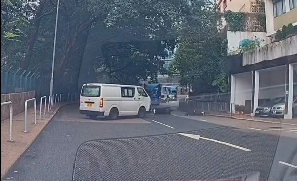 網上流傳一段車Cam片,事發地點在中半山,時間是日前(28日)早上11時15分。車Cam片所見,有一輛客貨車在堅尼地道36B號對開,打右燈在路中調頭。惟後方有一輛電單車駛至,鐵騎士收掣不及,與遭客貨車右車頭硬撼,鐵騎士被撞飛翻滾至路邊,車上司機和乘客隨即落車查看其傷勢。