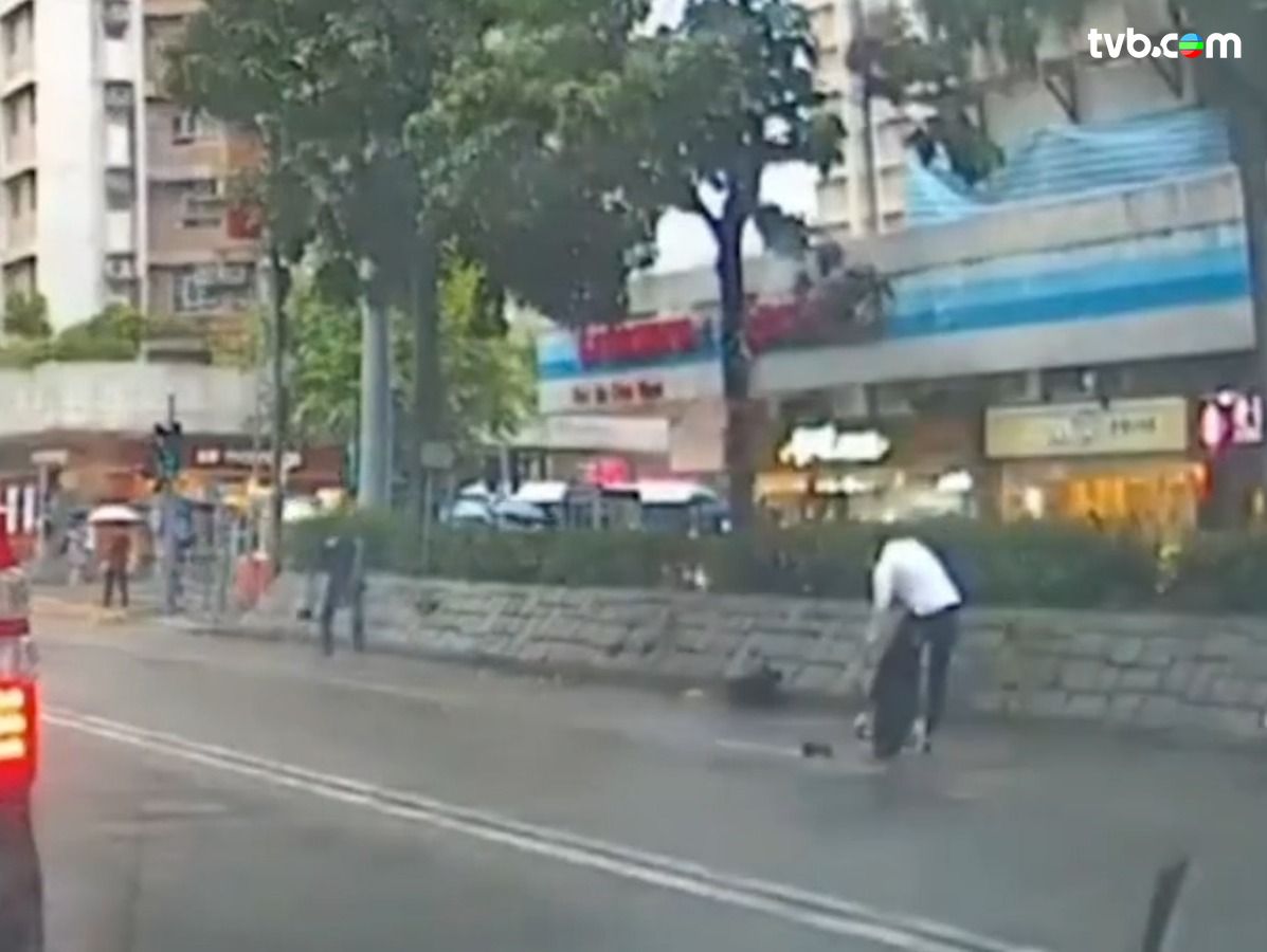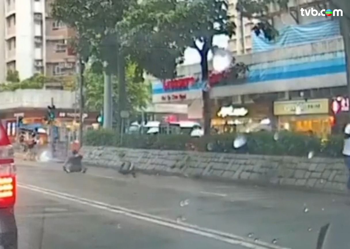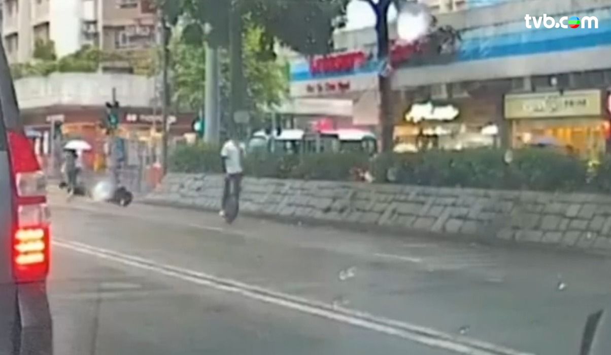 近日網上流傳影片,攝於大埔安祥路,可見兩名男子在馬路上逆線行駛,更踩着本港禁用的「風火輪」;之後一名黑衣男疑失平衡仆倒,「風火輪」裝置部件亦甩出,最後黑衣男自行起身兼離開!