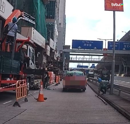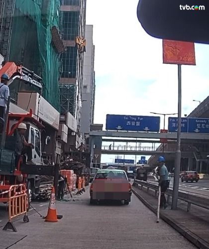 事件發生於昨日(17日)下午2時許,涉事的士正途經西營盤干諾道西(近威利麻街),當駛過搭有棚架地盤時,疑因工人一時失手,支棚竹突然從高處飛墮,首先擊中的士車身,車窗當場碎裂四濺,然後彈到地上;隨後即有地盤工人移走棚竹,放置到對面。