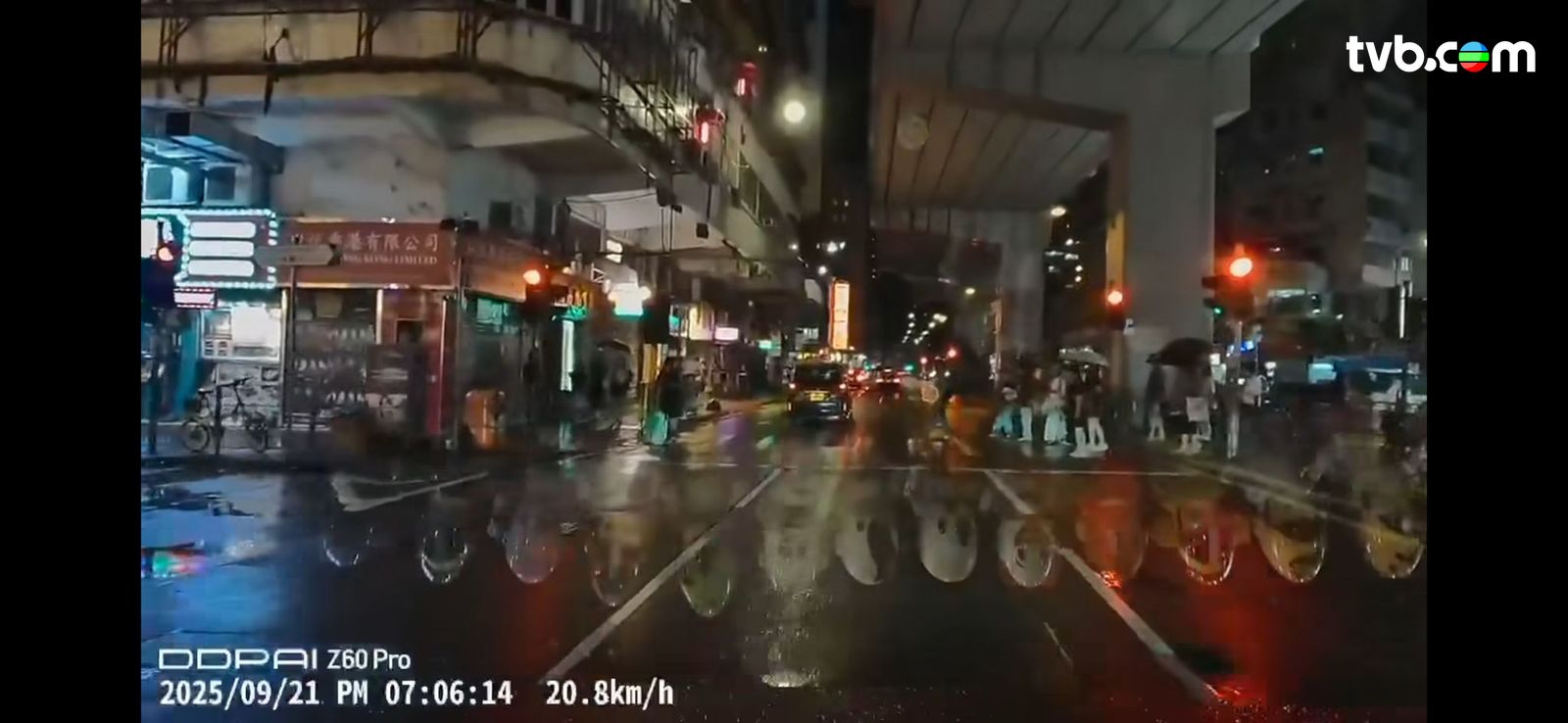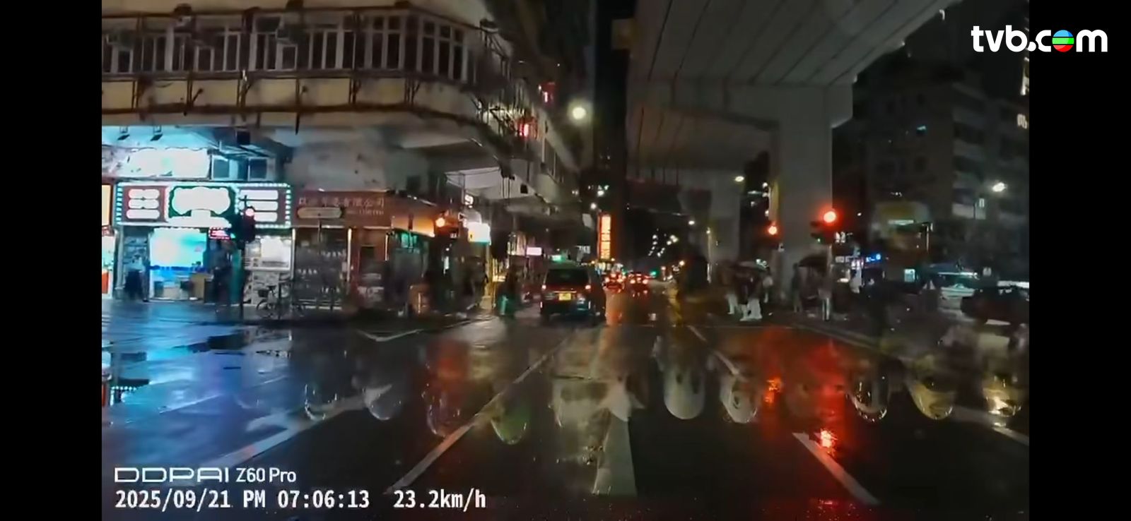 日前Facebook群組流出一條車Cam片,可見一輛紅的正沿太子道西高速行駛,前方交通燈由綠轉紅,行人踏出斑馬線準備過馬路,惟涉事司機仍沒減速意欲,直衝紅燈;幸好行人早有留意,先停步讓紅的駛過,方能避免意外;片中可見,紅的駛走以後仍有路人未能定驚,不停注視紅的身影。
