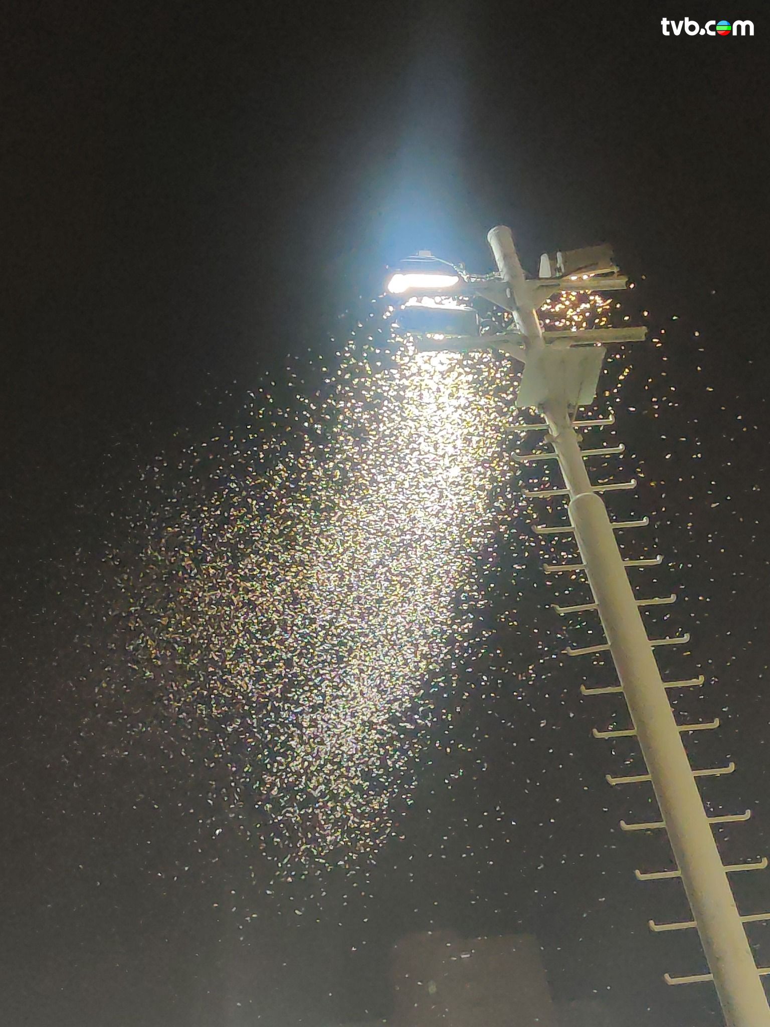 近日多名黃大仙區街坊報料,指在慈雲山中心運動場、翠竹花園以至獅子山下一帶,竟湧現大量飛蟻;照片可見,成堆飛蟻聚集於慈雲山中心運動場的橙柱位置,燈光映照下化作密密麻麻的白點,畫面非常誇張!連樓主亦言「慈雲山中心運動場白蟻多到好恐怖」。