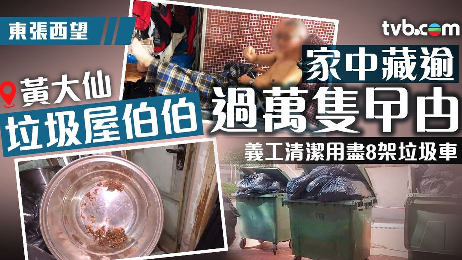 《東張西望》收到觀眾報料,指黃大仙有一名伯伯時常睡在走廊沙灘凳上,屋裡堆滿雜物,不單只進不去,還有老鼠和曱甴出入,就連小便都是在門口就地解決,情況已經持續十幾年,令附近街坊都好困擾。