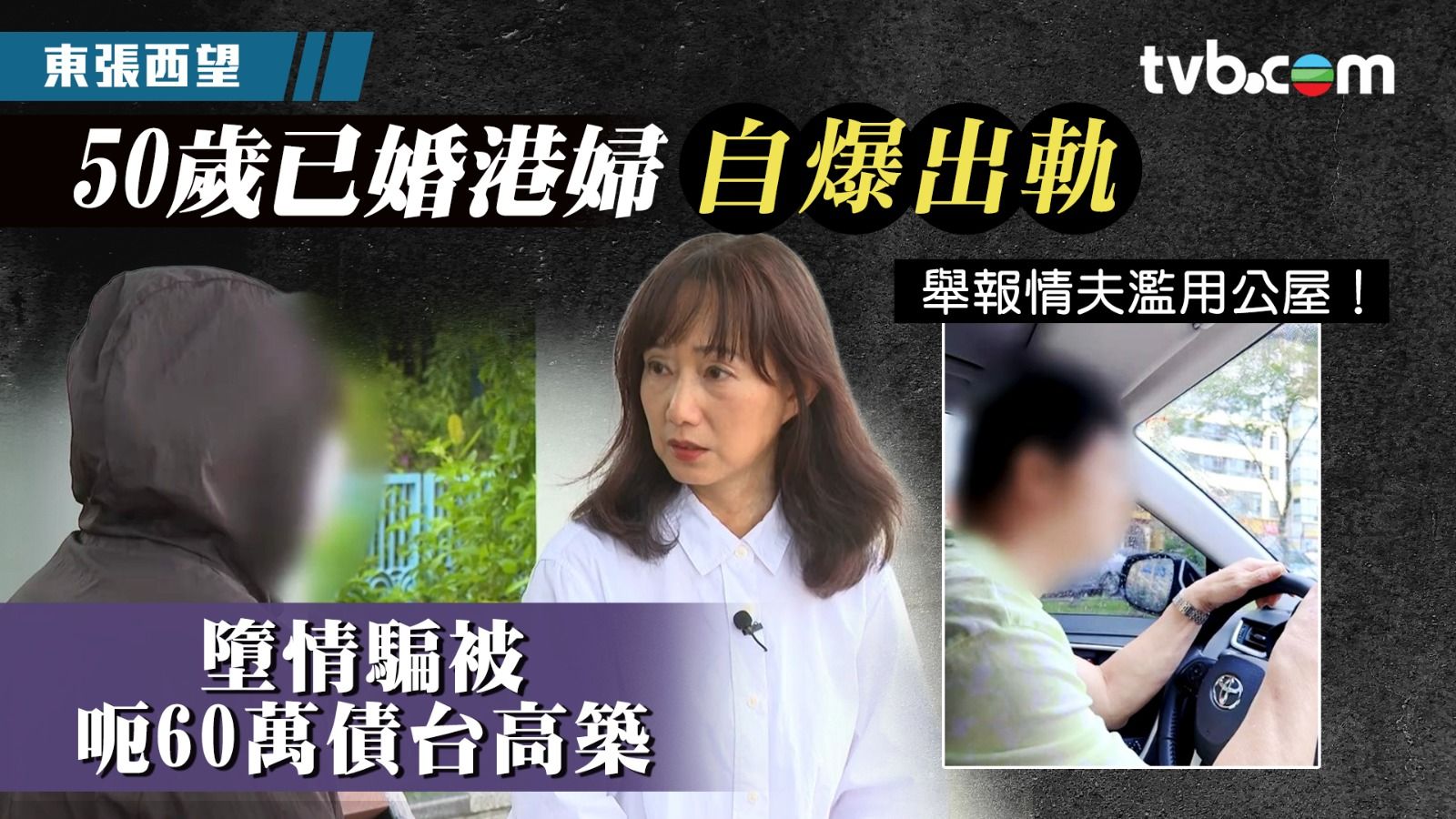 《東張西望》今集事主劉女士(化名)年過50,已婚並育有一對子女。原本平凡喜樂的生活,在三年前認識到一位叫丘姓男子之後就被打破。