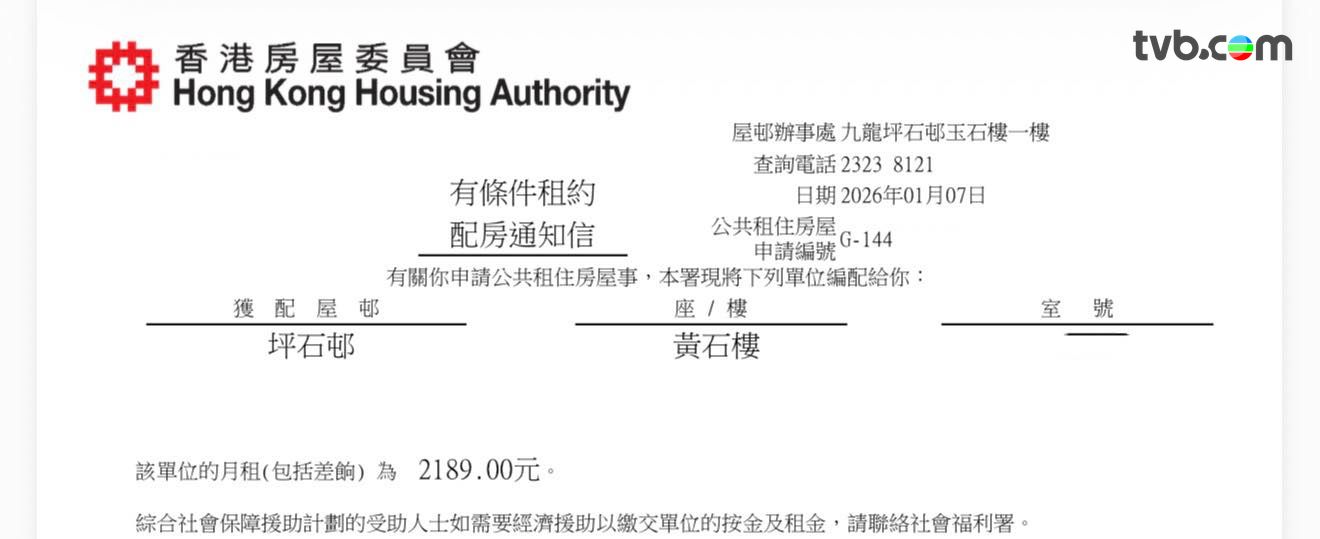 有港媽近日分享,透露她與家人輪候公屋約6年,近日終於收到「二派」通知,獲分配至觀塘坪石邨黃石樓一個約 329 呎的單位,月租僅 $2,189。樓主指他們原於 2018 年 9 月以二人家庭身份開始申請,隨後因家庭加入新生嬰兒而成功獲派樓,她亦於帖文中向網民請教:「二派坪石,請問環境點樣?」