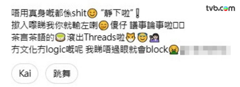 事件持續發酵,不少網民湧入涉事外企官方社交平台留言投訴,批評其職員涉嫌公開求職者個人資料。涉事HR職員被發現於其社交平台個人簡介再度留言,以逾百字發文反擊,語氣挑釁寫道:「唔用真身嘅都係sXXt,靜下啦!撳入嚟睇我你就輸咗喇,傻仔......冇文化冇logic嘅呢,我睇唔過眼就會block,go to hell la。」