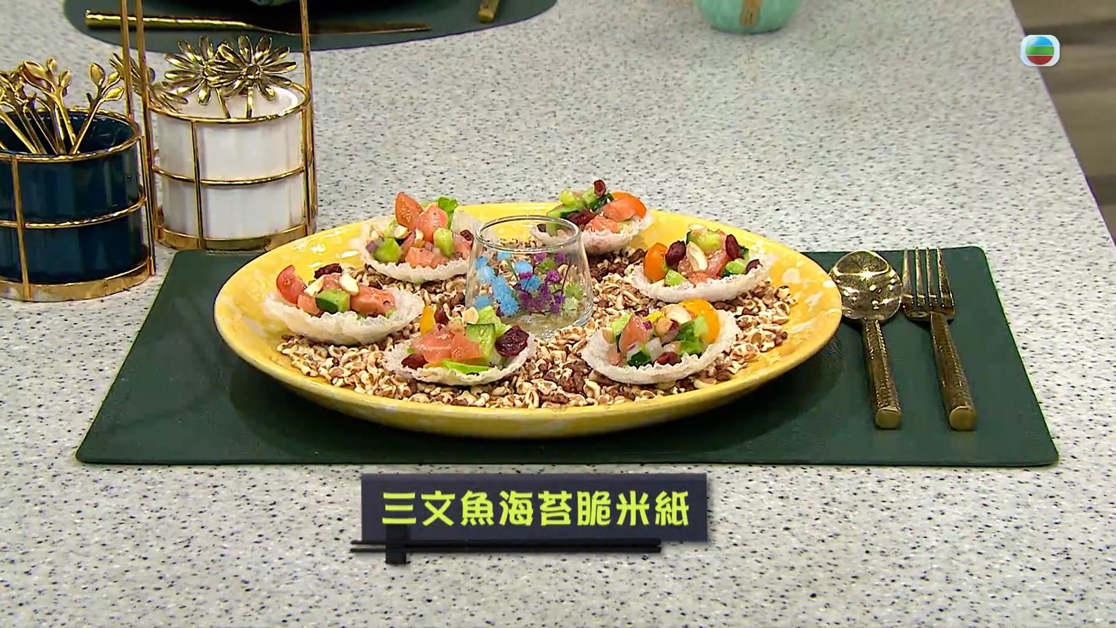 今集《流行都市》「睇餸食飯」環節有 譚詠儀 教大家做「三文魚海苔脆米紙」。![]()