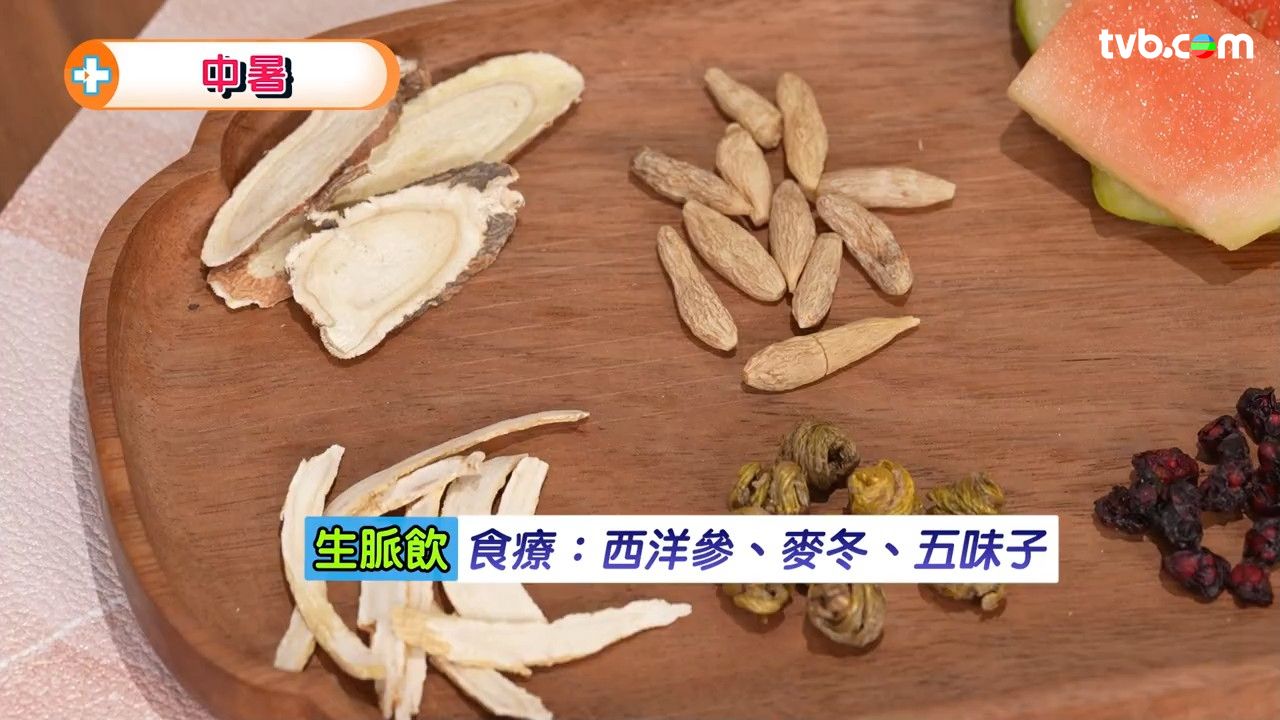 註冊中醫師何慧欣提醒,陰虛人士中暑後易疲倦,容易再中暑,這些人可以飲「生脈飲」,即西洋參、麥冬、五味子,這款茶飲同樣適合中暑後不適時飲用。