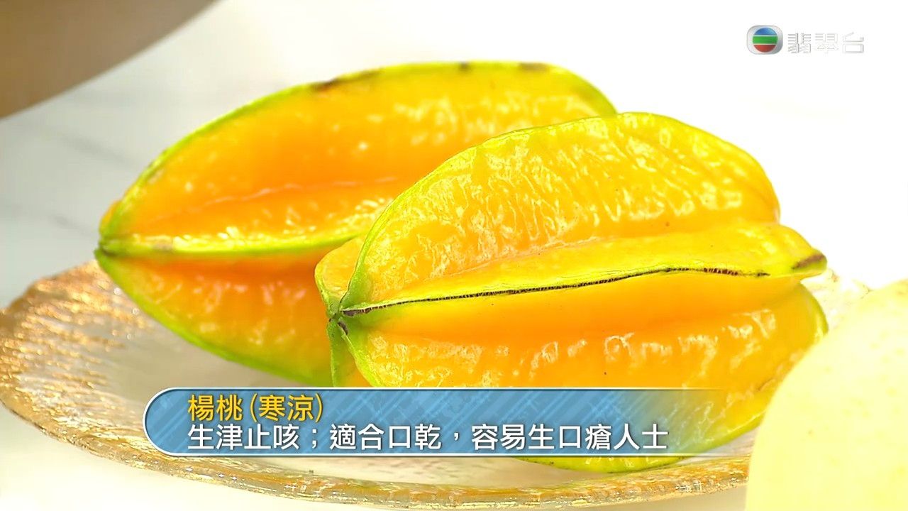 至於中秋節常見的水果楊桃,本身是屬於寒涼性質,但具備良好的食療價值,它能生律止咳,非常合適口乾或者容易生口瘡的人士。註冊中醫師曾覺知同樣提醒,切記過量食用楊桃,因為這種水果屬性虛寒,本身脾胃虛寒或者容易肚瀉者,則應該較少食用。