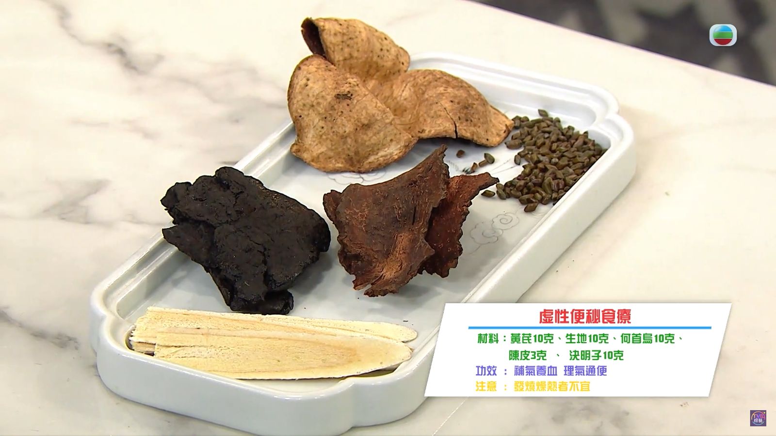 材料:黃芪10克、生地10克、何首烏10克、陳皮3克、決明子10克