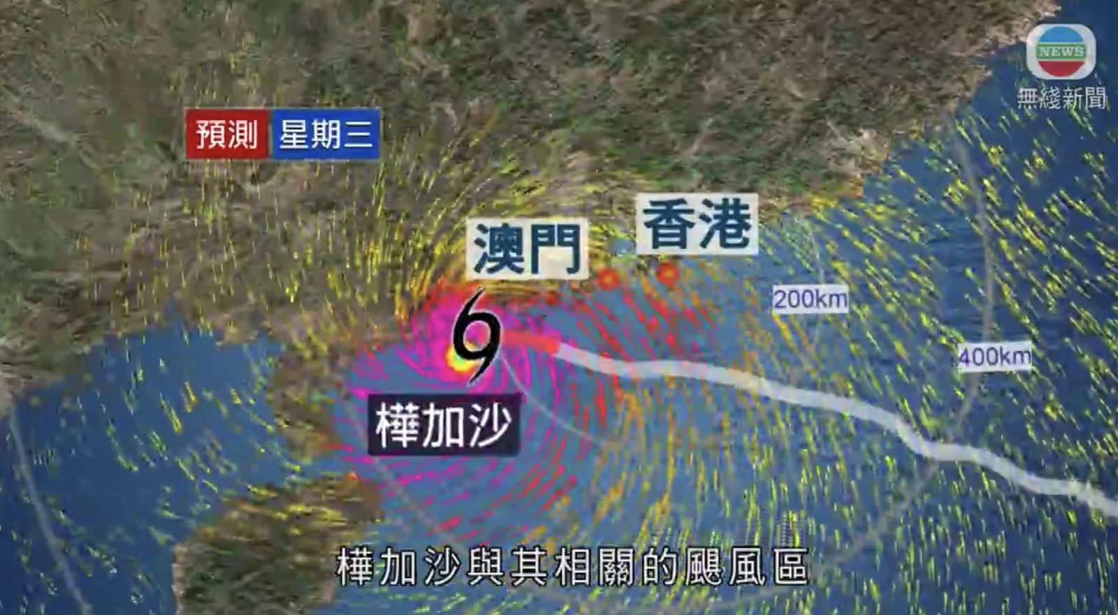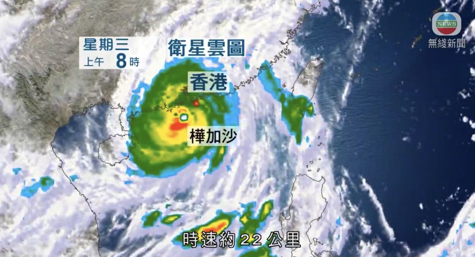 超強颱風樺加沙集結在香港之西南約170公里,預料向西或西北偏西移動,時速約22公里,靠近廣東西部沿岸一帶。樺加沙與其相關的颶風區正逐漸遠離本港。