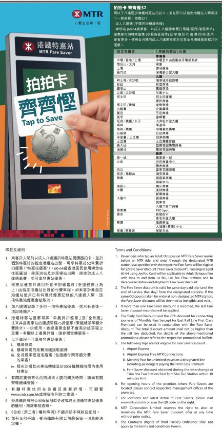 港鐵在港九新界設有41個「港鐵特惠站」,以成人八達通拍一拍卡並於指定港鐡站入閘,車資即減$2,每月工作日拍一拍卡,每月慳到差不多$50,即睇全港「港鐡優惠站」位置,交通優惠不要錯過。