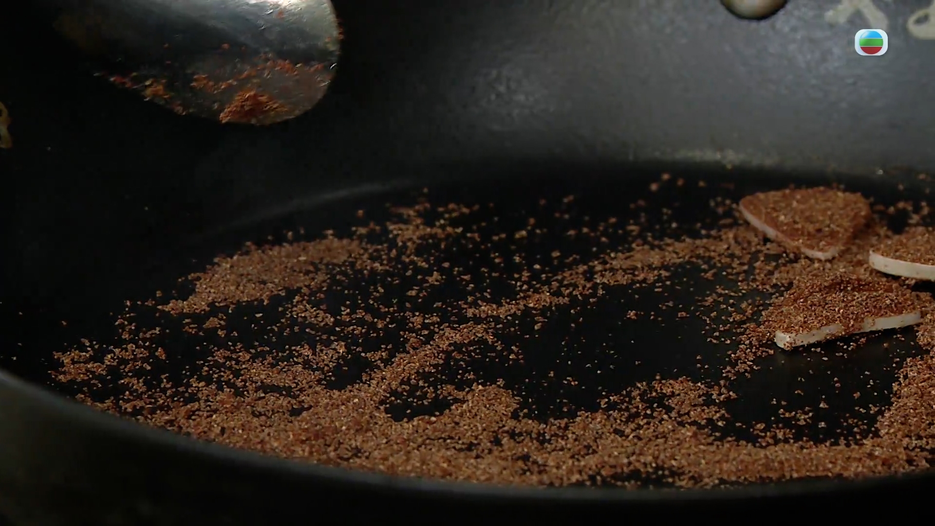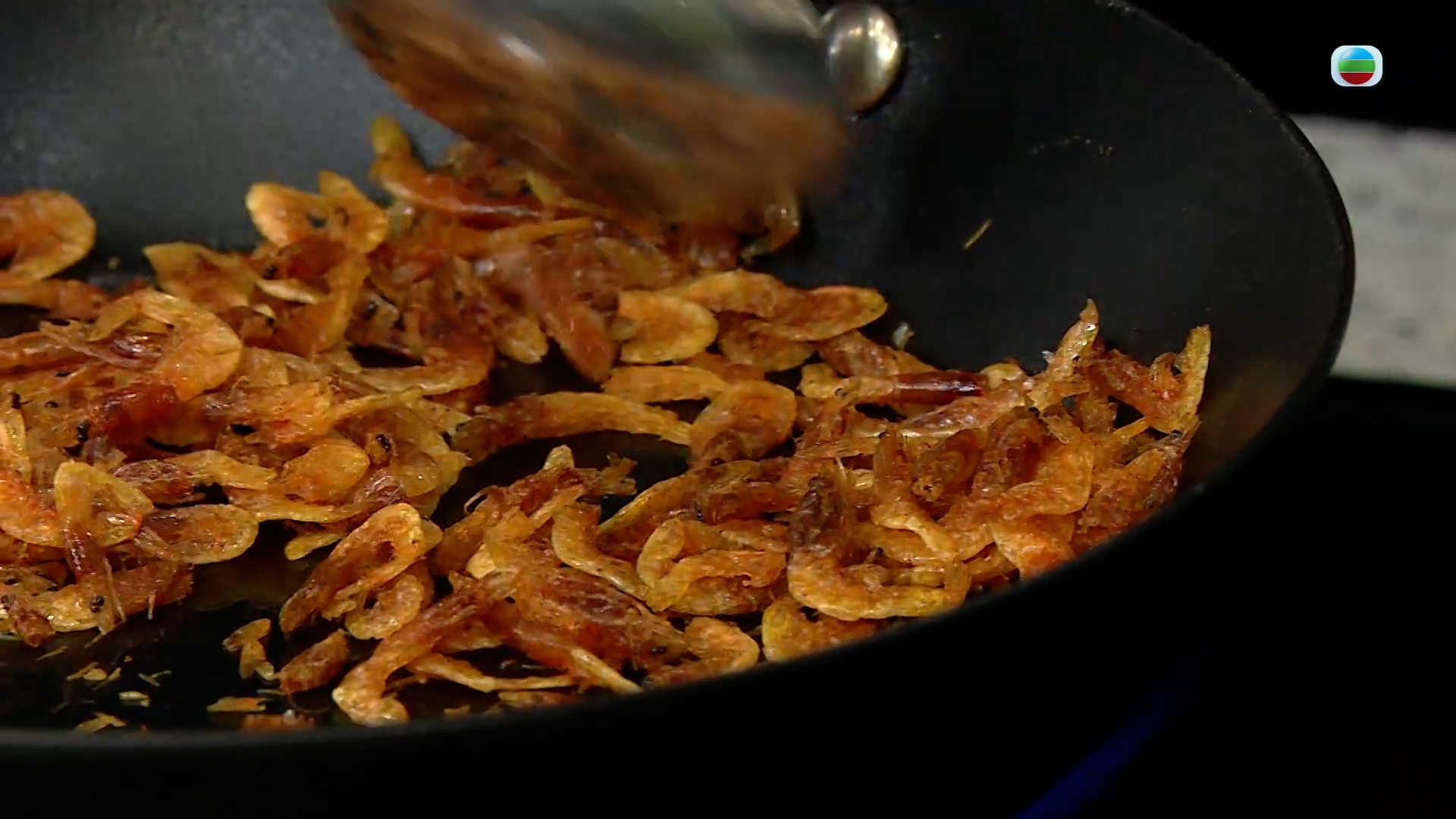盛出蝦籽後原鑊炒香櫻花蝦,這裡文星師博事先把櫻花蝦油炸過,只要炒出香味即可。