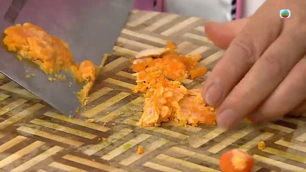 材料:鹹蛋黃 3隻(蒸熟),鹹蛋白 1隻,紫菜 1件,勝瓜 2條,蝦 10隻(起雙飛),芹菜 1條,沙白 1斤