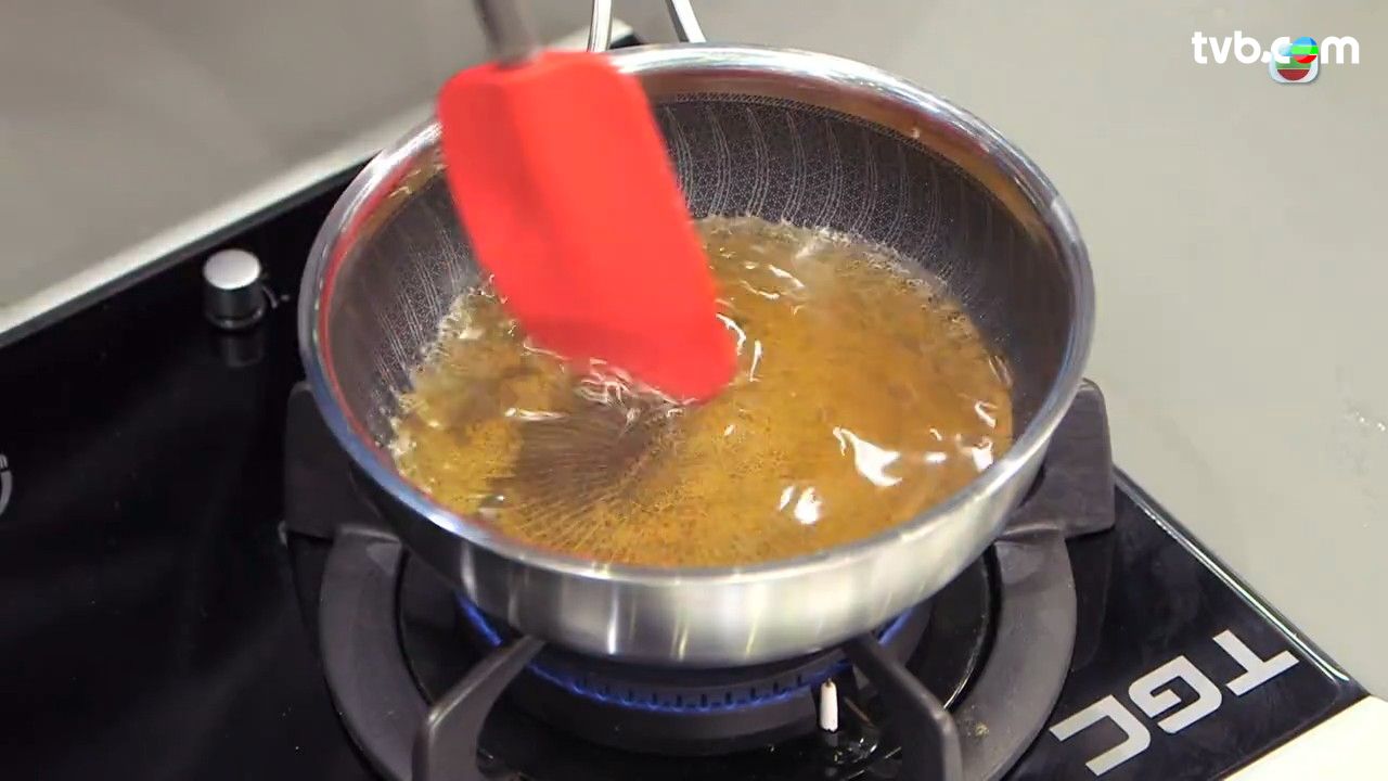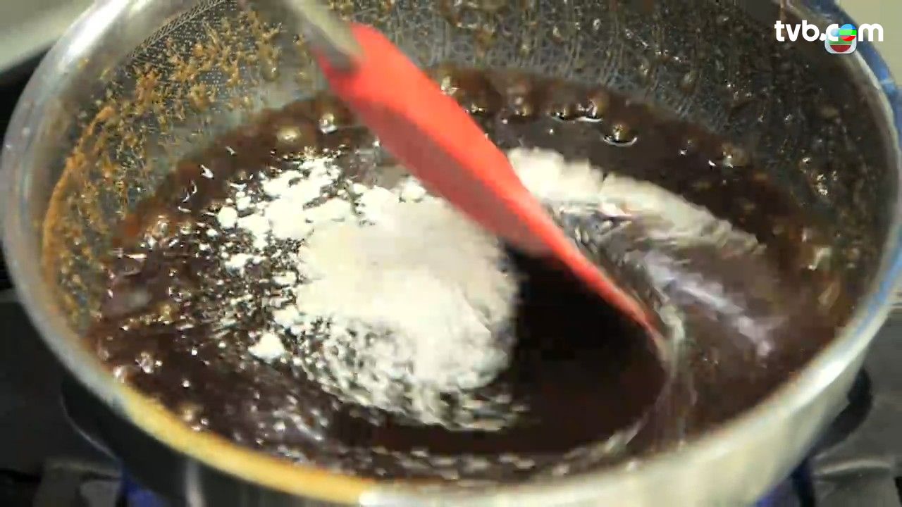 - 麥芽糖加入水,用小火煮至稠身,馬上放入棗蓉、無鹽牛油、黑糖四物膏,過程中不斷攪拌