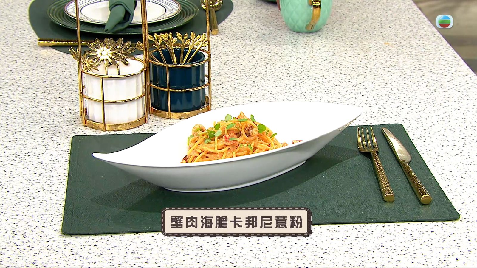 今集《流行都市》「睇餸食飯」環節有 Ken譚以健 教大家做「蟹肉海膽卡邦尼意粉」。![]()