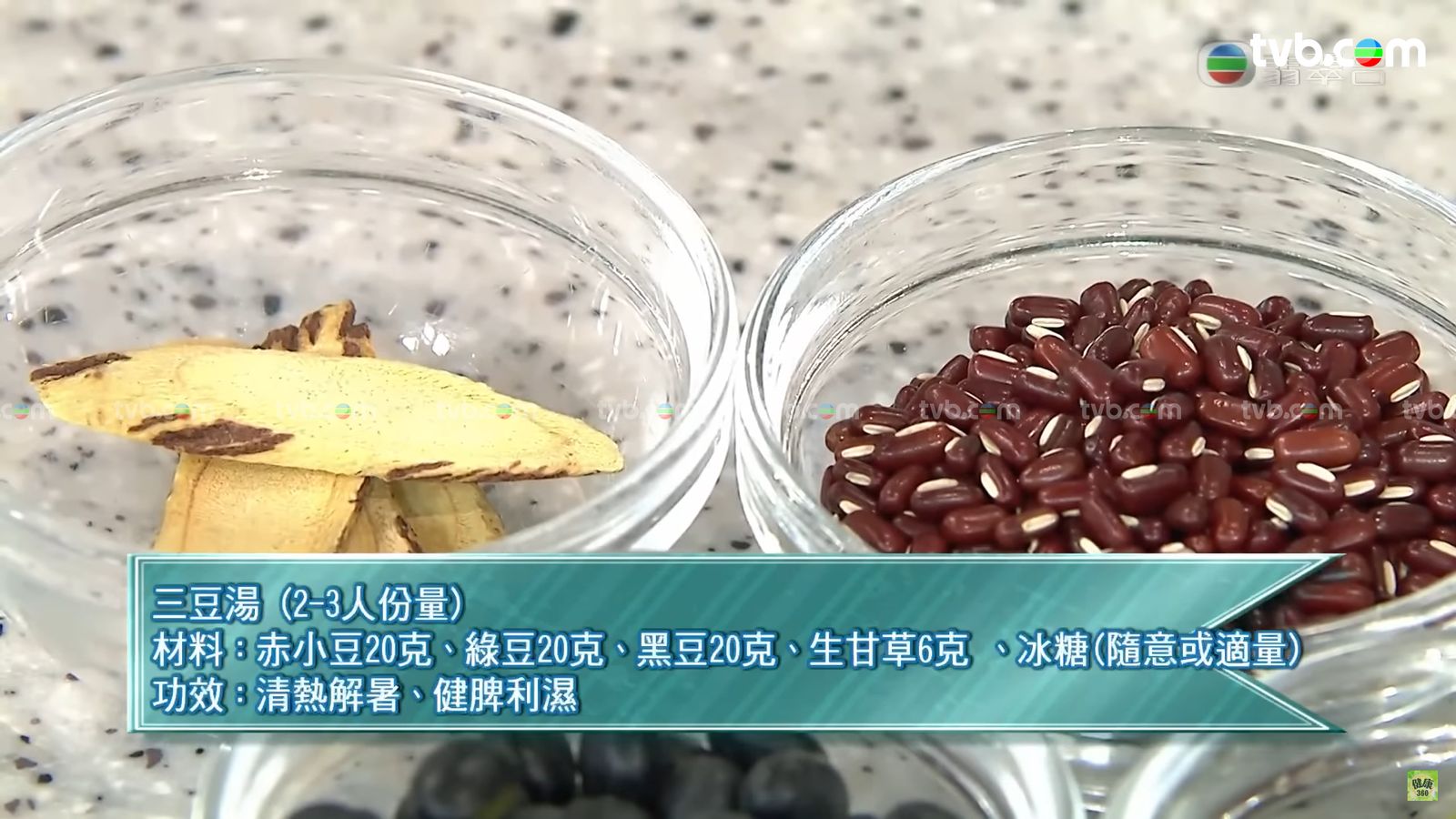 夏季期間,人體容易積聚「熱毒」,輕則引起暗瘡、口臭等症狀,嚴重時更會導致皮膚紅腫、四肢困倦!如何從日常生活中減輕熱毒?用綠豆、黑豆、赤小豆與甘草製成「三豆湯」,真有清熱解毒作用?TVB節目《健康360》邀請陳翠萍中醫講解「藥食同源」的理論和功效,並帶來性質溫和的排毒茶飲。