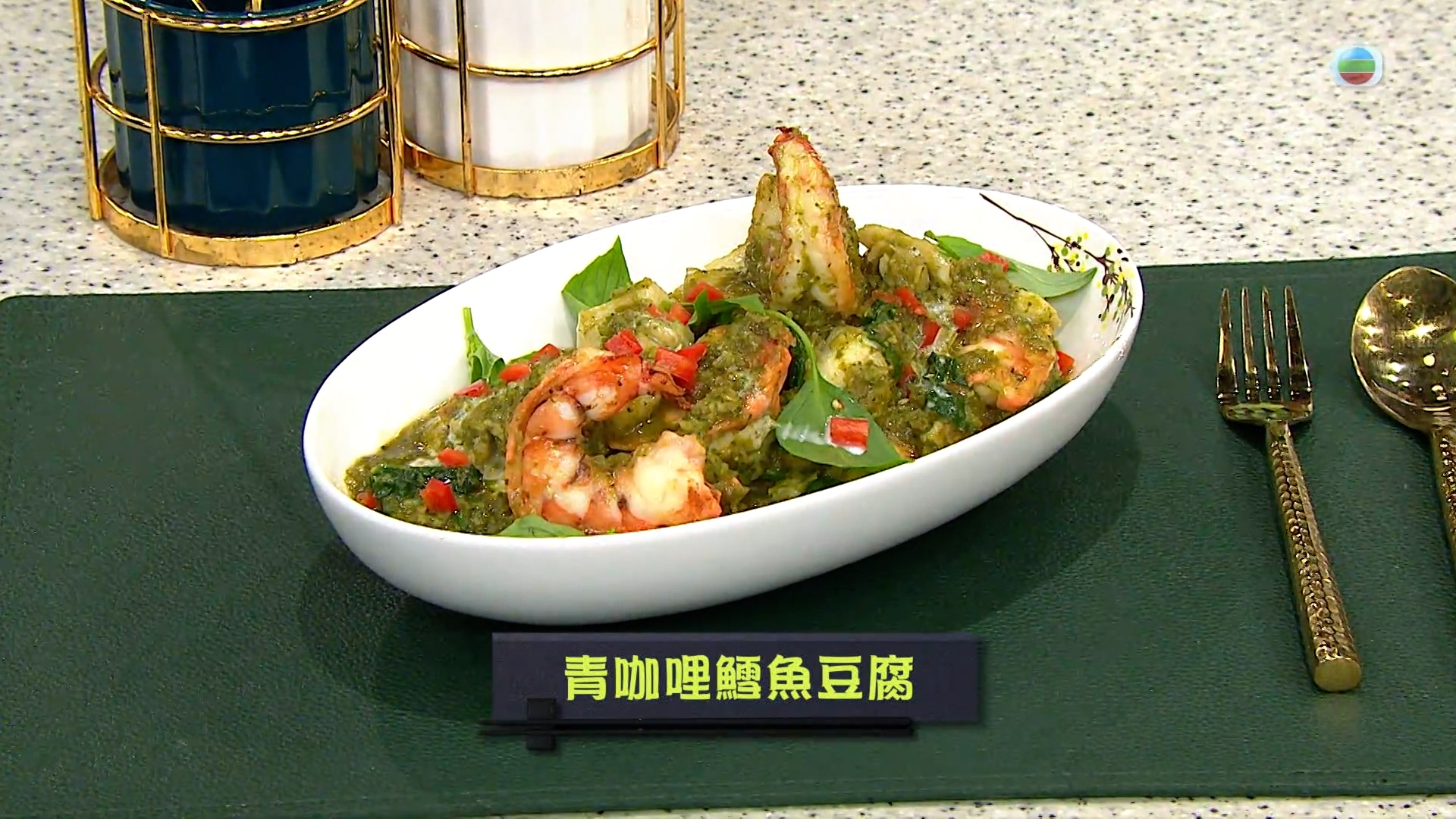 今集《流行都市》「睇餸食飯」環節就有 Leslie陳國賓 教大家煮健康美味的「青咖喱鱈魚豆腐」。