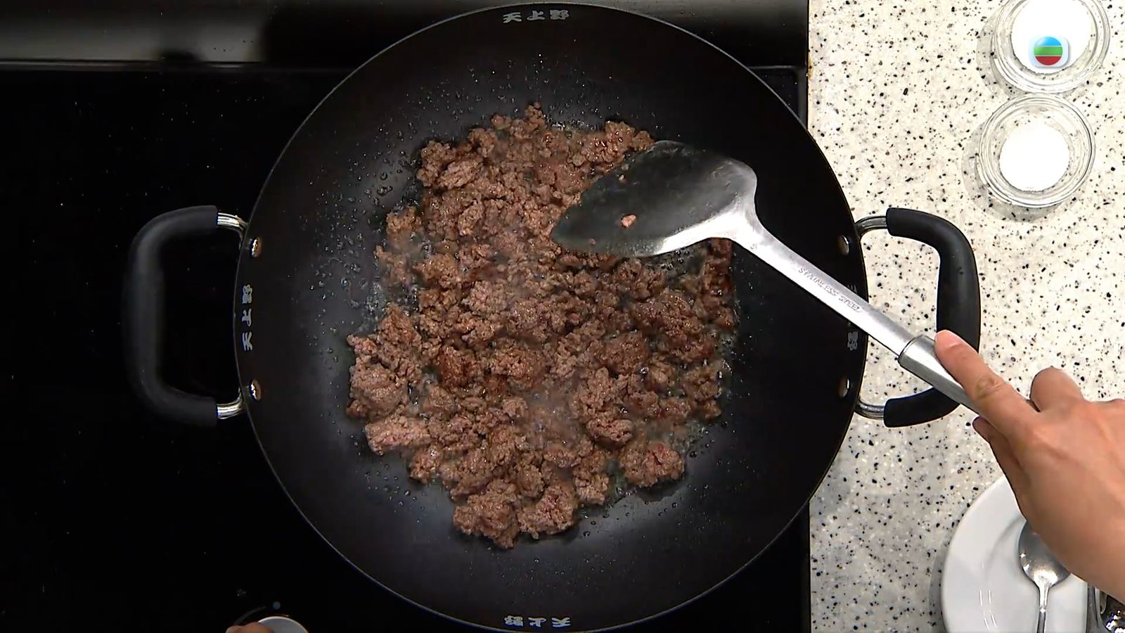 免治牛肉白鑊下鍋炒至微黃,盛起備用。