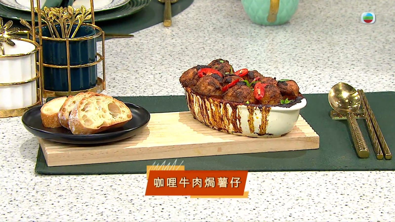 今集《流行都市》「睇餸食飯」環節有 Margaret傅季馨 教大家做「咖哩牛肉焗薯仔」 。![]()