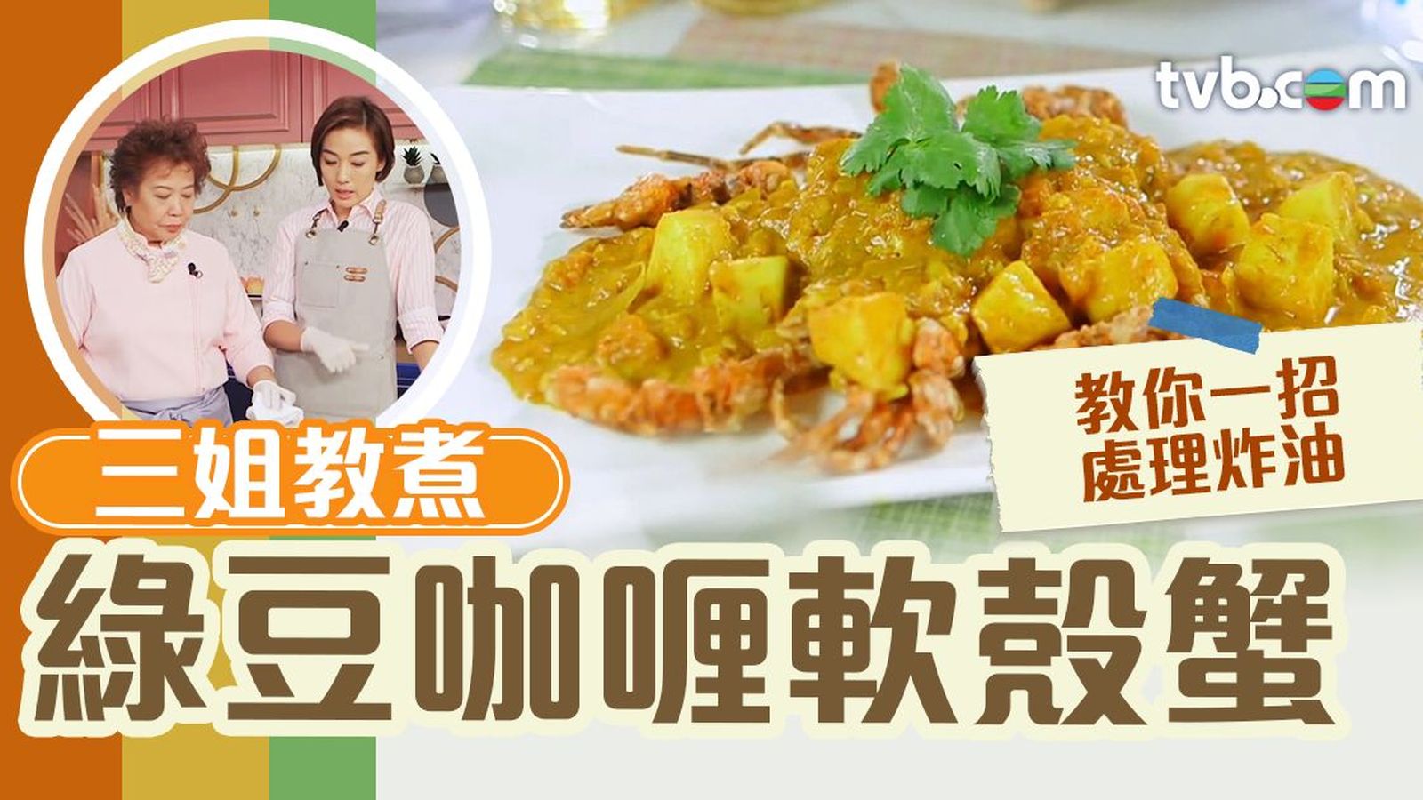 咖喱食譜|想食咖喱,不如試試煮軟殼蟹!蕭秀香(三姐)、江美儀(美儀)主持的《女人必學100道菜》中,三姐曾教煮綠豆咖喱軟殼蟹!