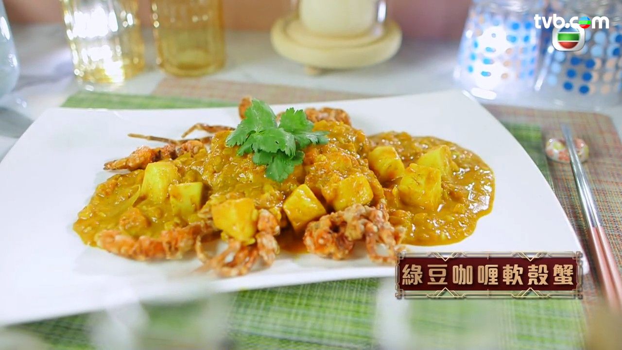 蕭秀香(三姐)、江美儀(美儀)主持的《女人必學100道菜》中,三姐曾教煮綠豆咖喱軟殼蟹,煮出來的軟殼蟹濃味又鮮美!