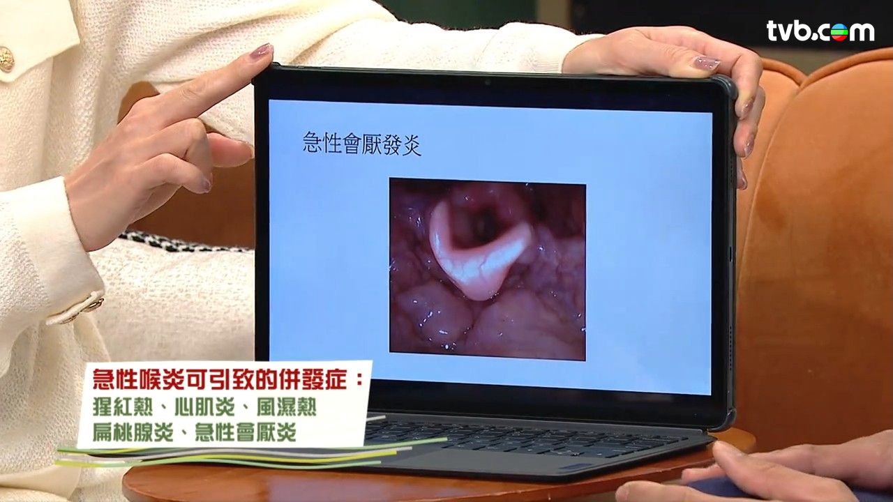 喉炎|急性喉炎常見於轉季時,患者多會出現聲沙、喉嚨痛等症狀。TVB節目《流行都市》請來耳鼻喉專科黃嘉輝醫生,講解急性後炎的資訊。醫生提醒,嬰幼兒因上呼吸道較狹窄,如出現呼吸困難或喘鳴聲,應馬上求醫;急性喉炎亦可能引致扁桃腺炎等併發症,到底治療詳情如何?