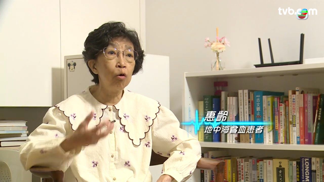 節目中訪問了一位地中海貧血患者惠齡,惠齡在七歲時因一場腦膜炎,被確診為中型,偏向重型的地中海貧血患者。雖然她勉強能靠自己的骨髓造血,受到感染或發燒就需要輸血,而身體對外來的血產生抗體,出現如溶血、發燒等,所以每次輸血都會出現困難。 而部分患者與惠齡一樣,身體對外來的血出現嚴重過敏反應。