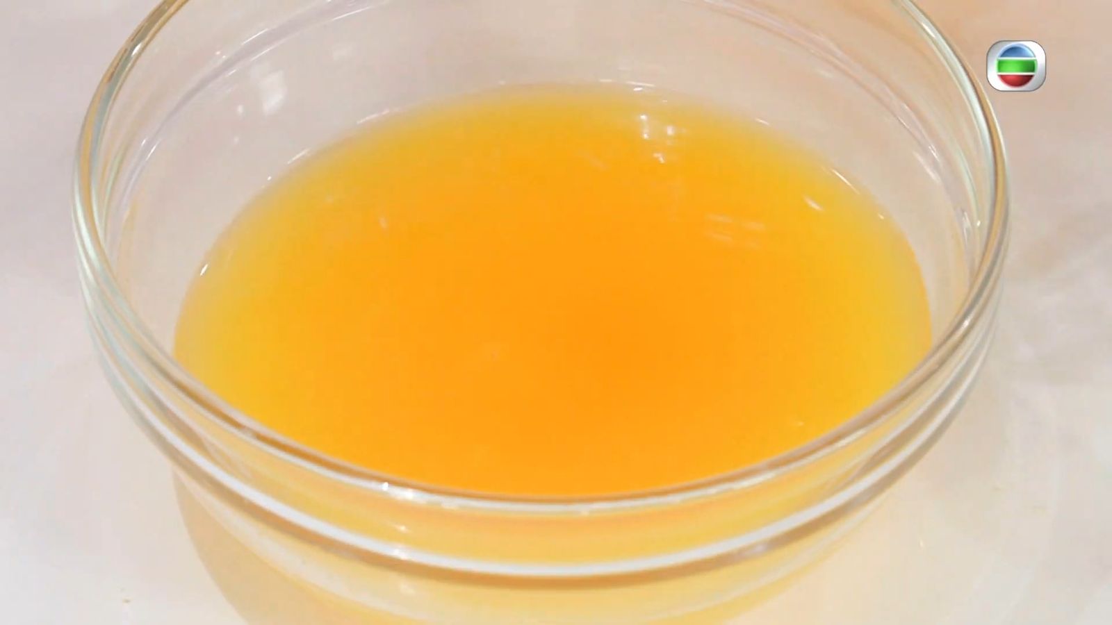 - 鮮榨橙汁加入一點現成果汁、一匙糖、一點鹽,放入鍋中煮,之後慢慢加入吉士粉水,煮成醬汁