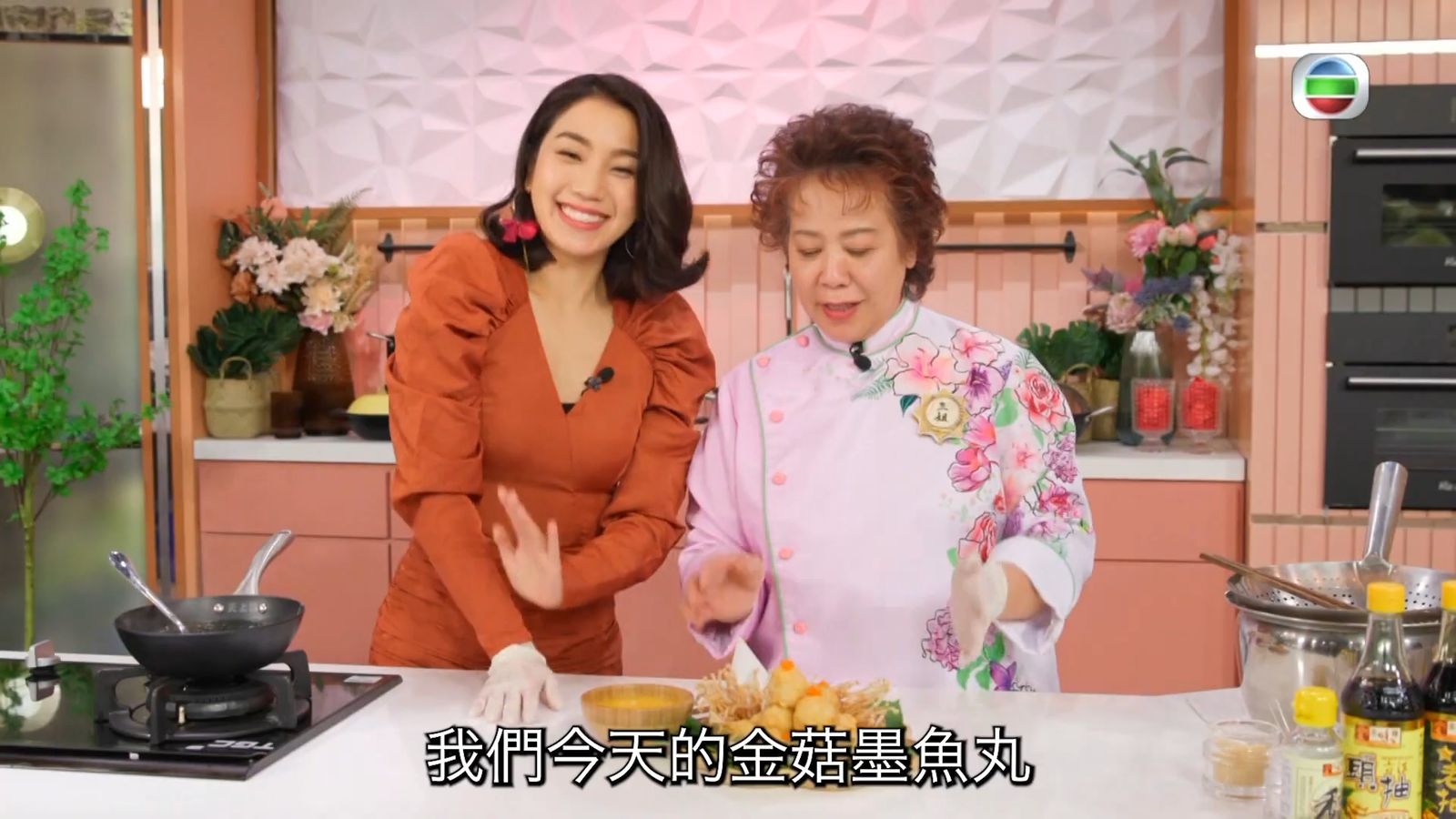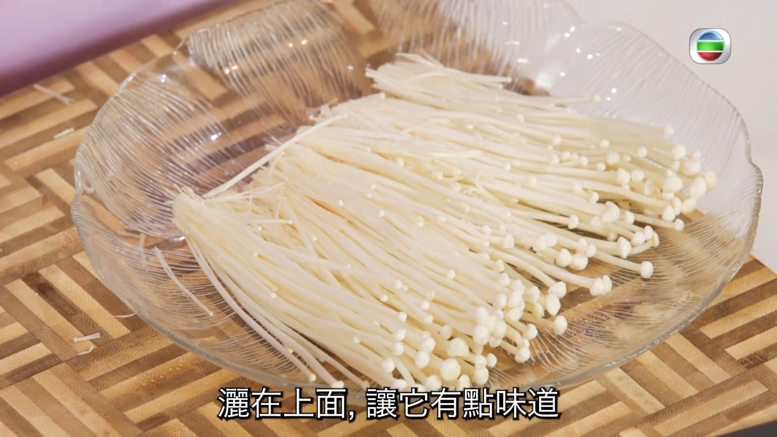 蕭秀香(三姐)、姜麗文主持的《三餸一湯》中,教整金菇墨魚丸,除了會用金菇及蟹子外,今次仲用了橙汁整成醬汁,酸酸甜甜。不用天婦羅粉炸金菇都可以又鬆又香脆?