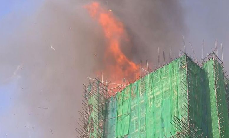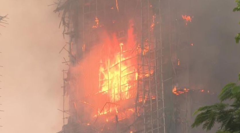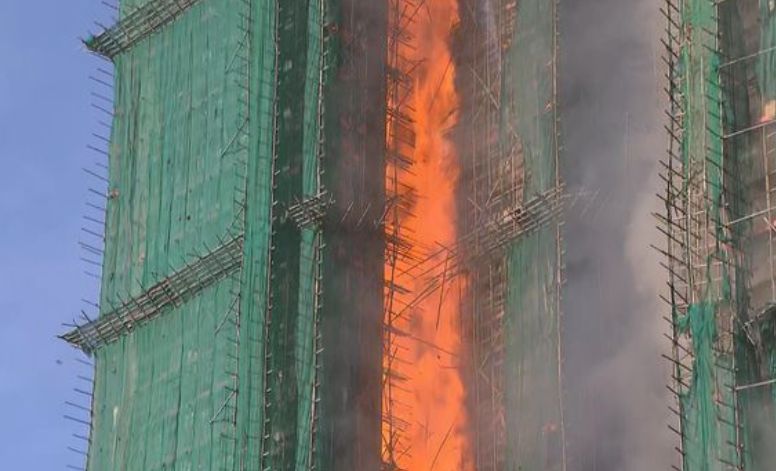 本台記者現場所見,棚架圍網起火,火屑飄到旁邊的大廈,懷疑火勢因此蔓延。