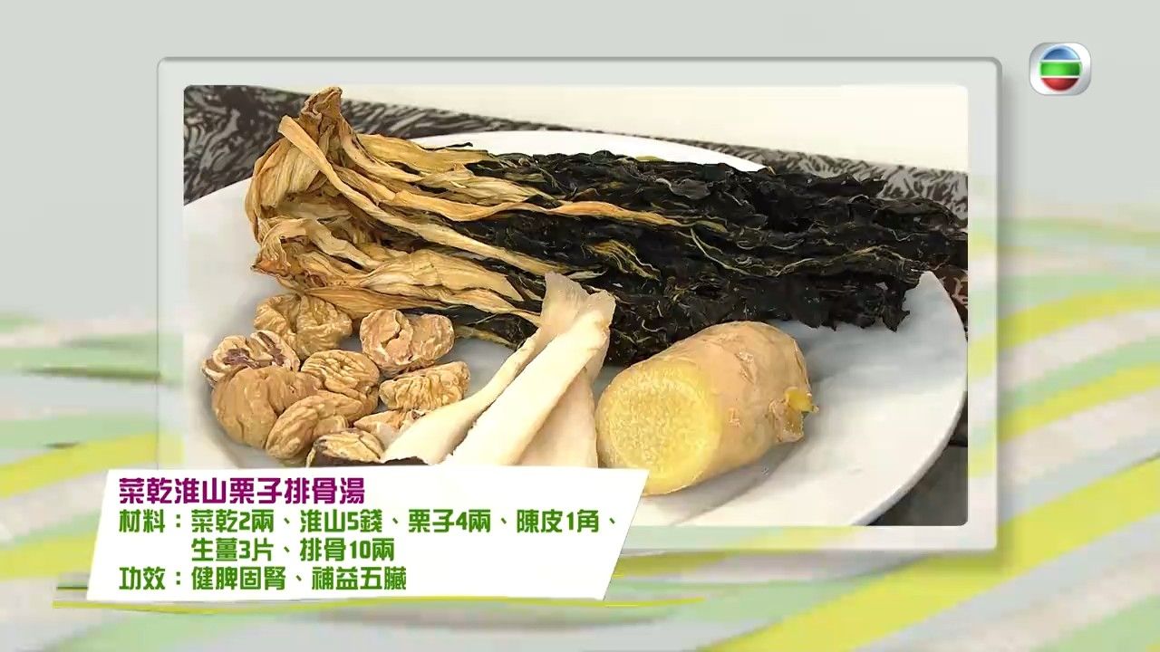 菜乾淮山栗子排骨湯(健脾固腎、補益五臟)