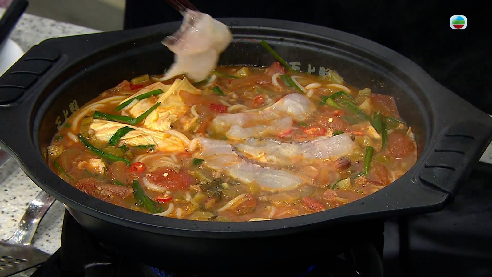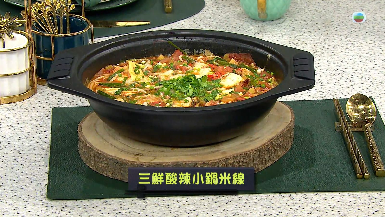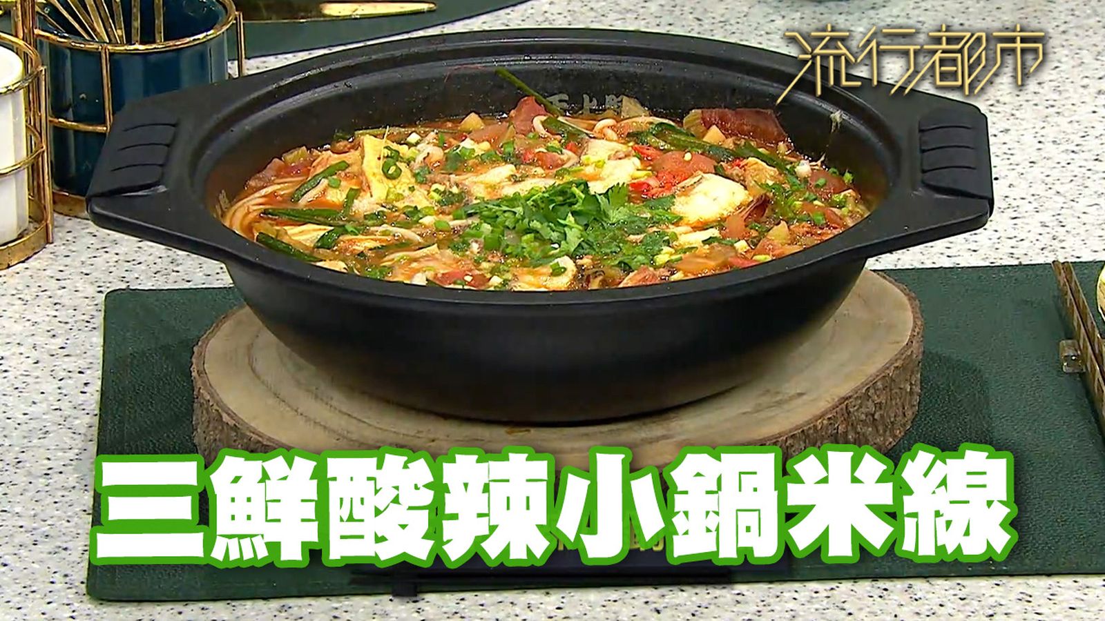 今集《流行都市》「睇餸食飯」環節有 Margaret傅季馨 教大家做「三鮮酸辣小鍋米線」 。![]()