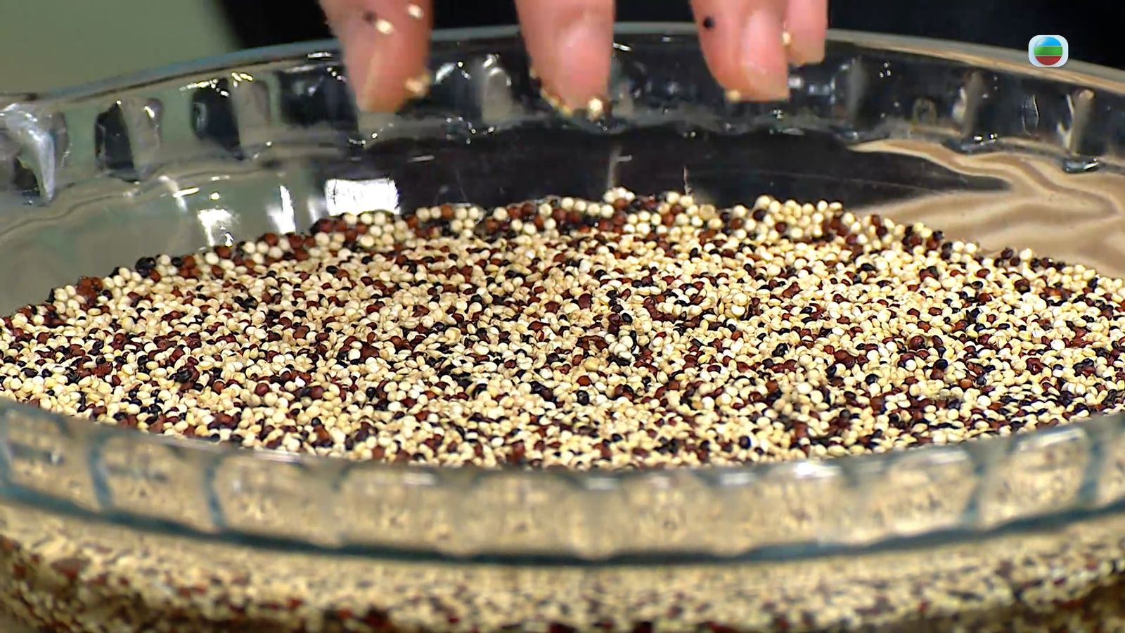 1.藜麥注水蓋面,以大火蒸20分鐘,盛起鋪在碟上。