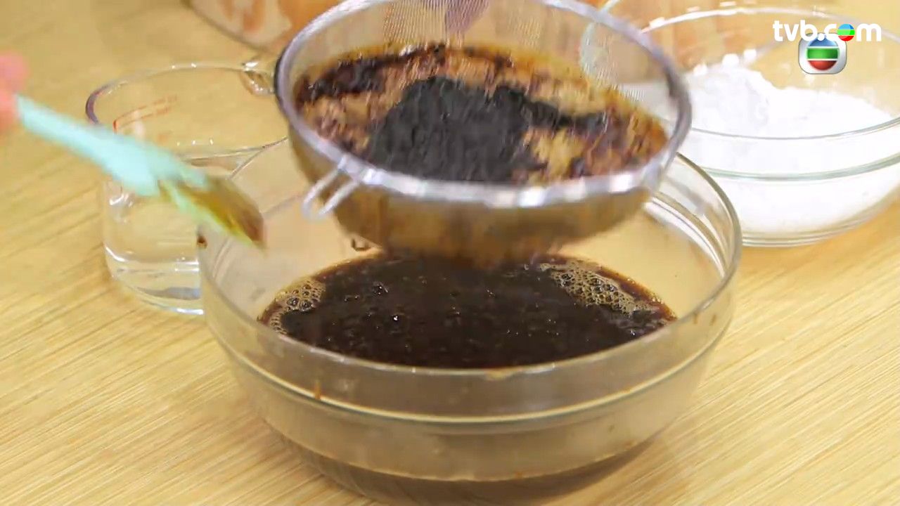 - 糯米粉、澄麵拌勻,逐少加入棗蓉及糖水,再拌勻,隔渣