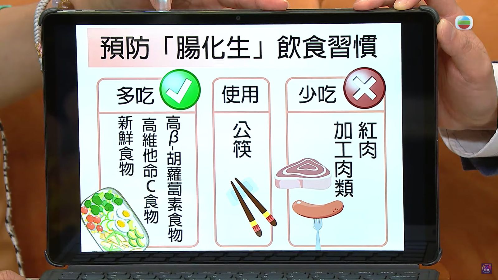王醫生建議,病人可以選擇β-胡蘿蔔素含量高的食物,例如番茄、哈密瓜、蘿蔔等。另有預防腸化生的三大建議: