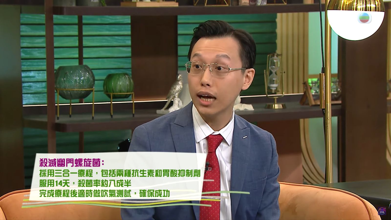 針對幽門螺旋菌,往往採用三合一療程,包括兩種抗生素和胃酸抑制劑。服用14天,殺菌率八成半。完成療程後適時做吹氣測試,確保成功。治療結束後都需要注意生活習慣避免復發。